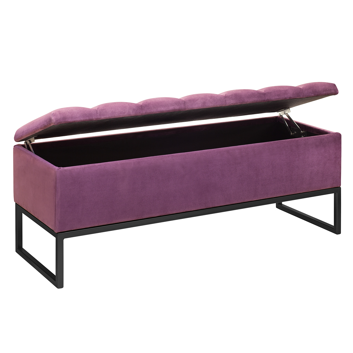 Банкетка CUBE с черным основанием, мягкой велюровой подушкой в стяжке Bulon и ящиком для хранения — это стильное и функциональное решение для вашего интерьера.