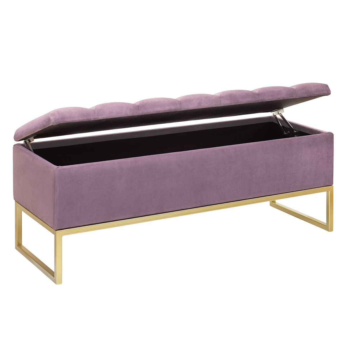 Банкетка CUBE с золотым основанием, мягкой велюровой подушкой в стяжке Bulon и ящиком для хранения — это стильное и функциональное решение для вашего интерьера.