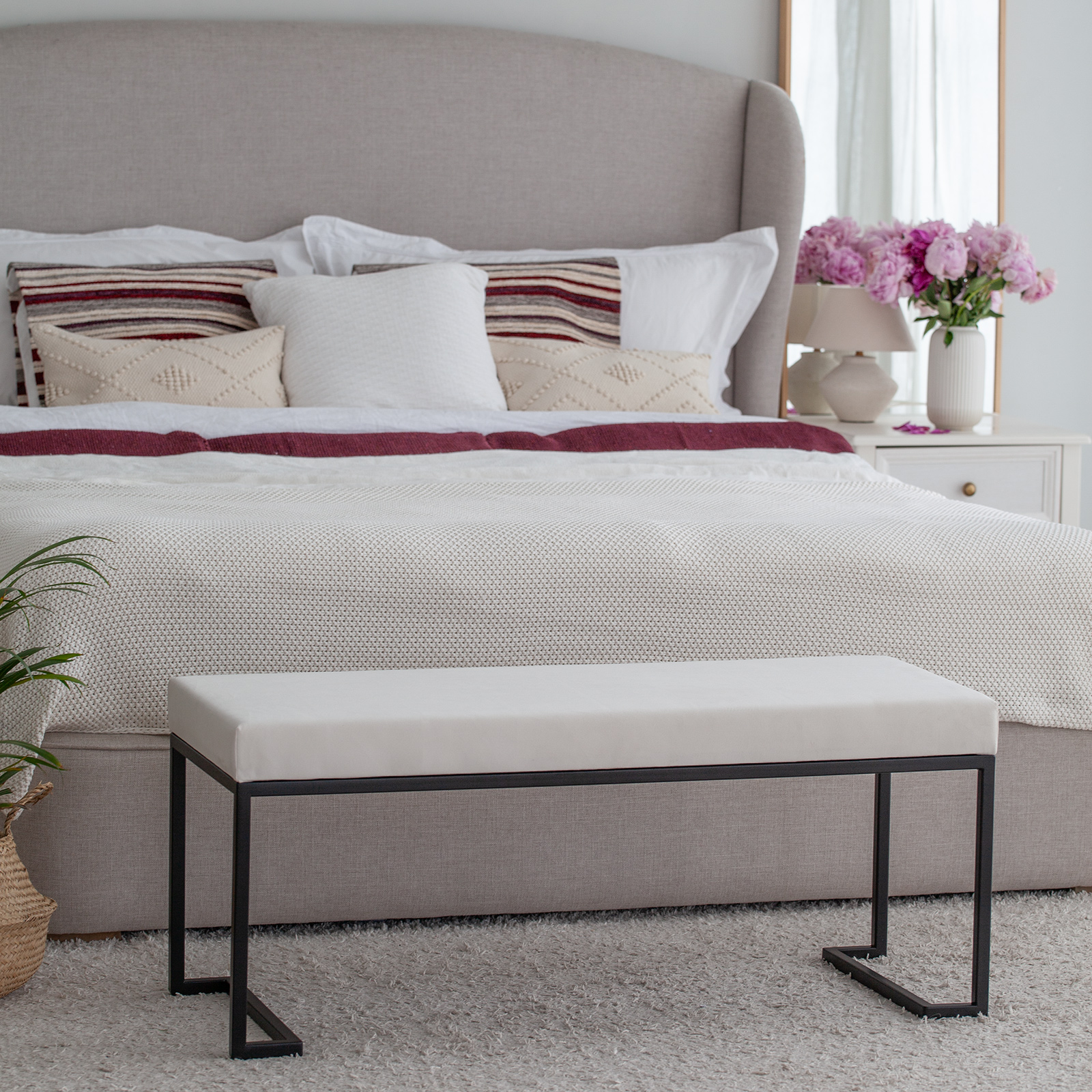 Стильная банкетка без спинки идеально подходит для спальни, гостиной, кухни, кабинета, гардеробной или прихожей. Банкетка-пуф также гармонично впишется в интерьер офиса, салона красоты, фотостудии, гостиницы, кафе или ресторана.