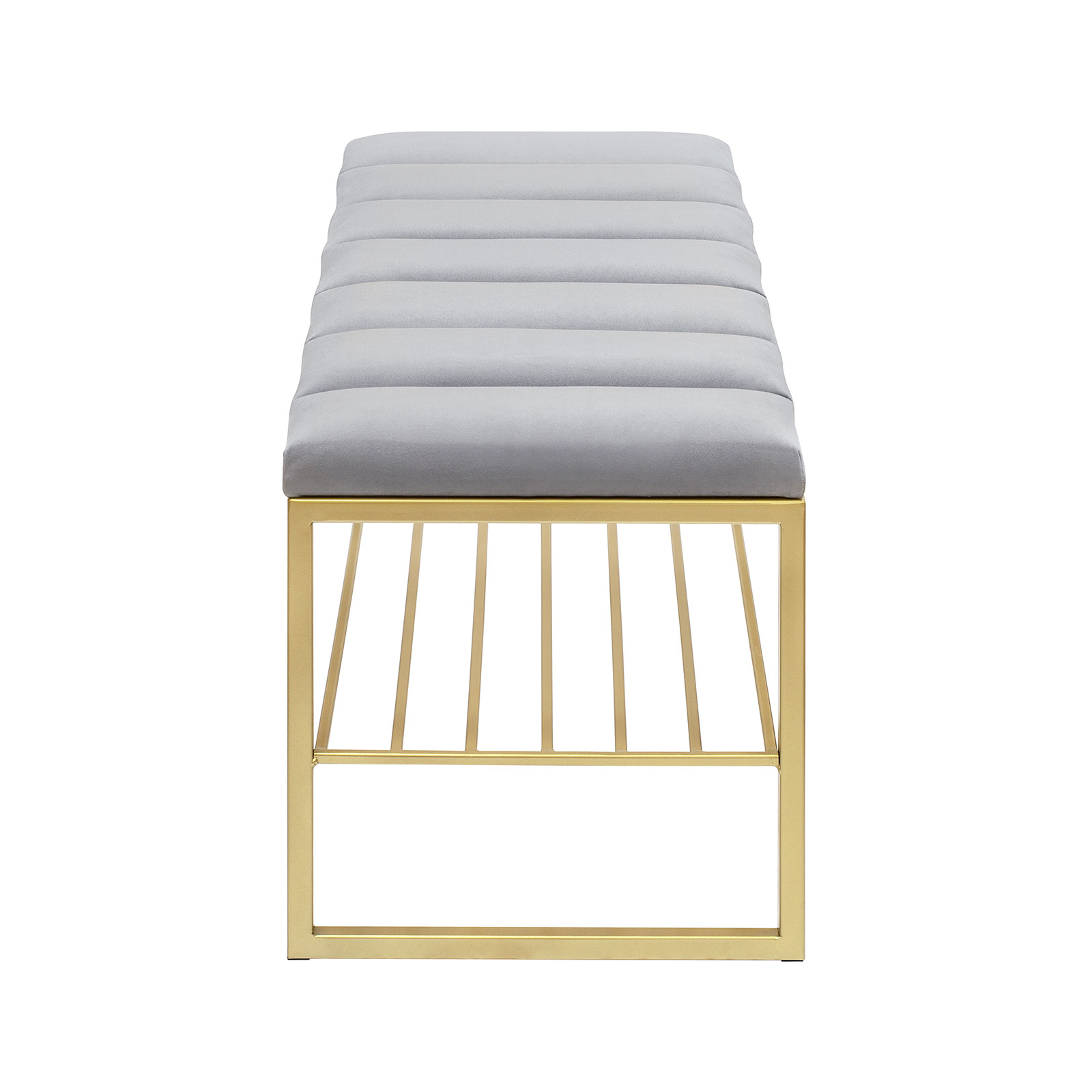 Банкетка RUBY — это стильный и функциональный предмет мебели. У нее золотое основание, мягкое сиденье и удобная полка для обуви.
