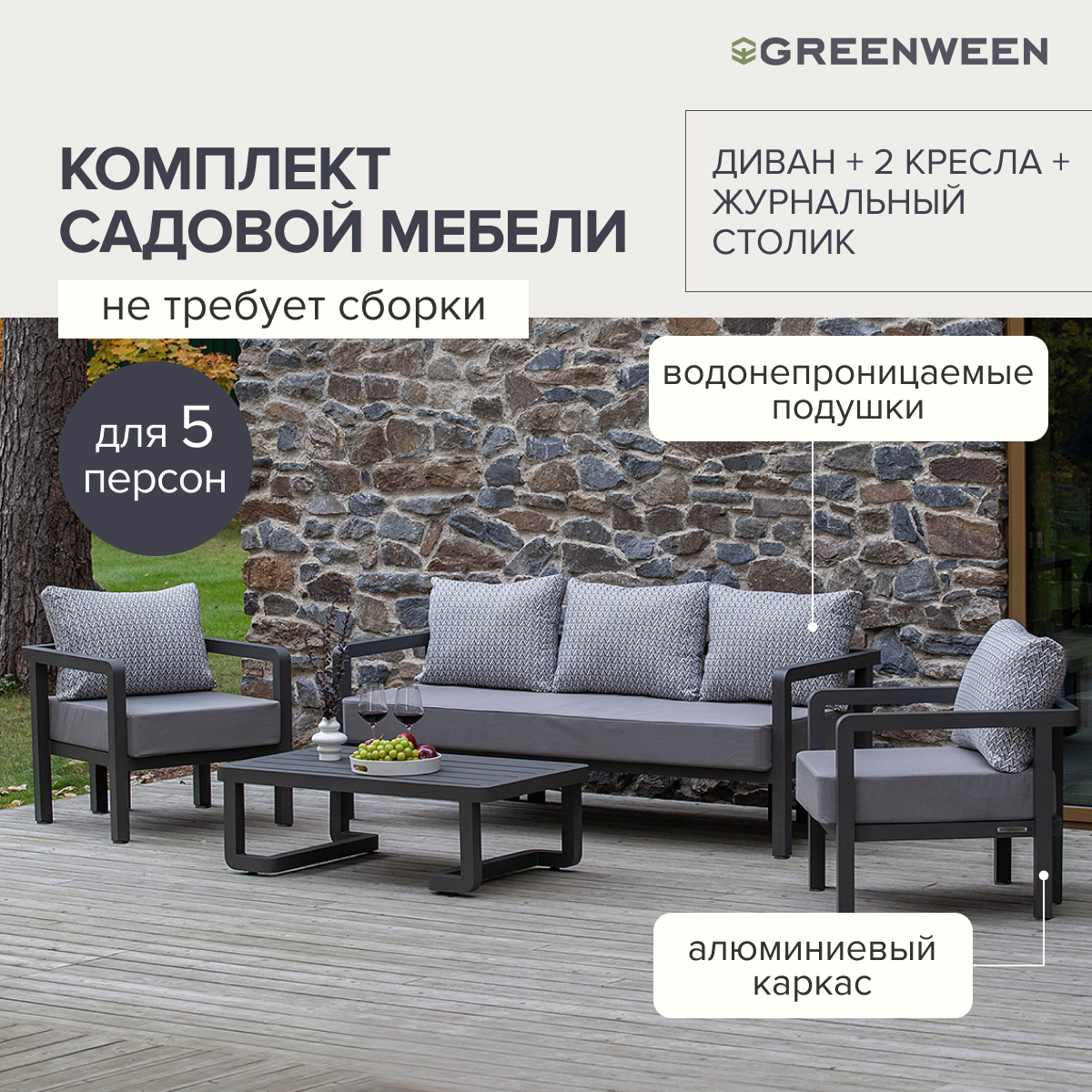 Набор садовой мебели AMALFI сочетает в себе современный дизайн, комфорт и долговечность. Комплект состоит из 4-х предметов: диван, 2 кресла и журнальный столик, подойдет для размещения 5 персон.