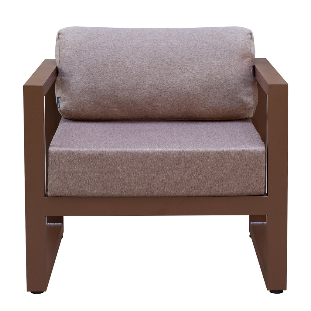 Каркас мебели изготовлен из алюминиевой профильной трубы 60х40 мм на высокоточном лазерном оборудовании. Металлическое основание с матовым полимерным покрытием коричневого цвета характеризуется повышенной прочностью, устойчивостью к царапинам. Профессиональная порошковая покраска надолго сохранит внешний вид мебели. Регулируемые по высоте ножки позволяют устанавливать мебель на неровной поверхности.