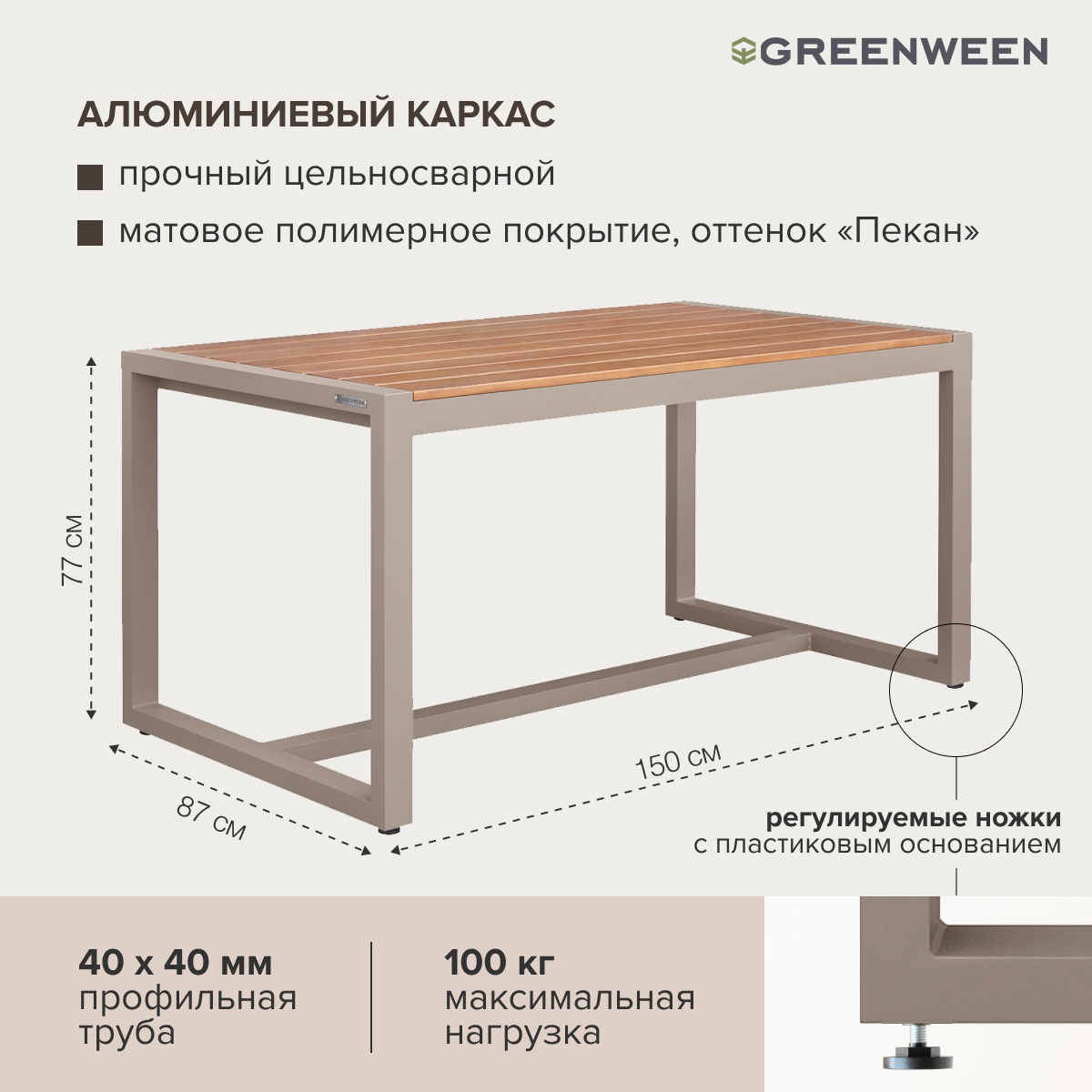 Каркас изготовлен из профильной алюминиевой трубы с матовым полимерным покрытием, что обеспечивает его долговечность и устойчивость к царапинам. Современное производство Greenween гарантирует эстетику и надежность сварных швов.