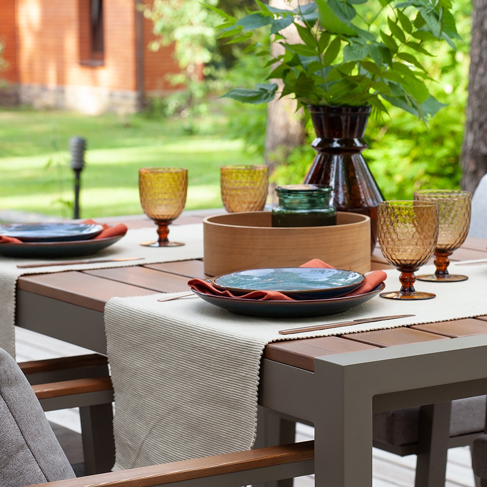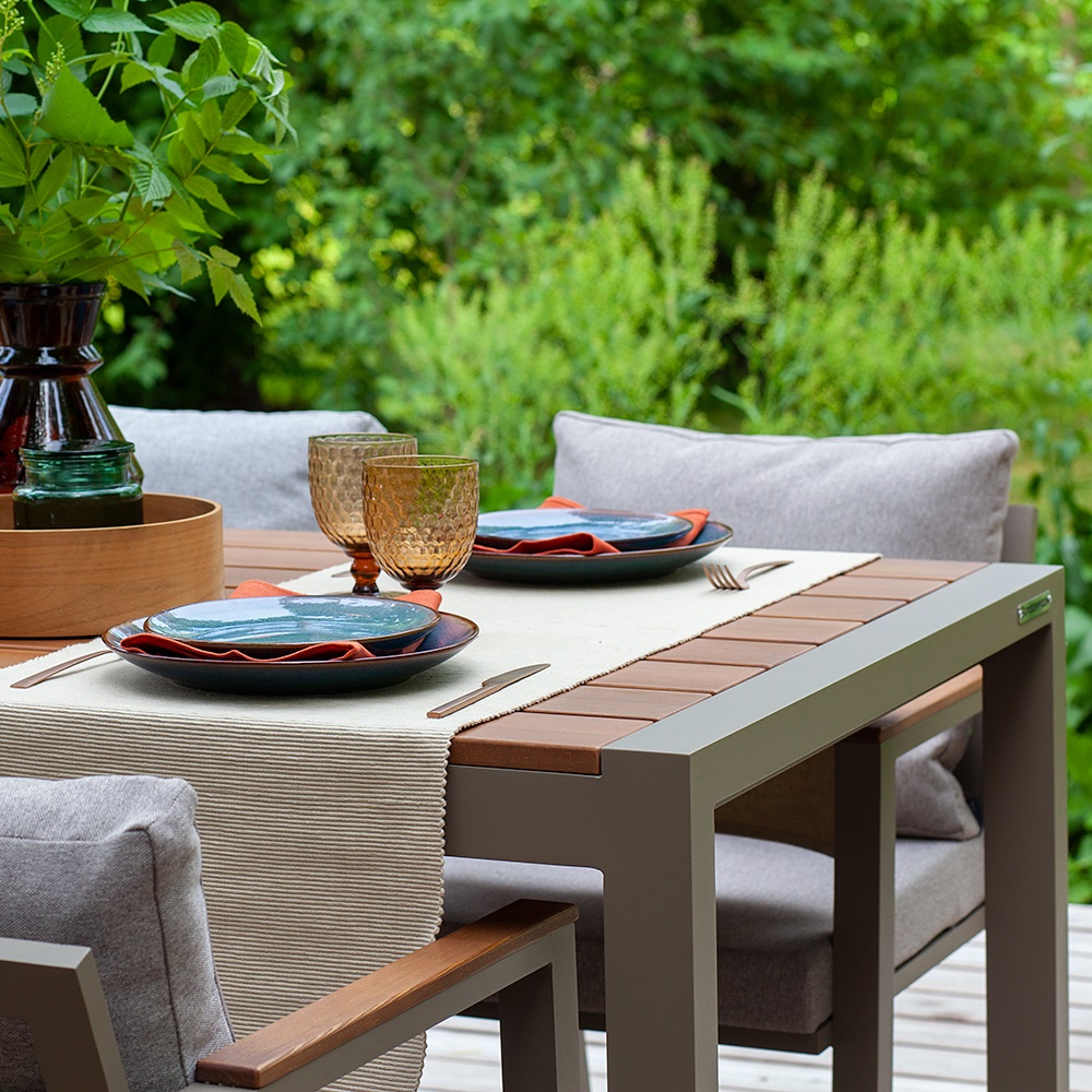 Набор садовой мебели SANTORINI разработан для создания уютной обеденной зоны на даче, в клубе, отеле или ресторане. Алюминиевая мебель отличается высокой прочностью и устойчивостью к разным погодным условиям. Подходит для использования как на улице, так и в помещении.