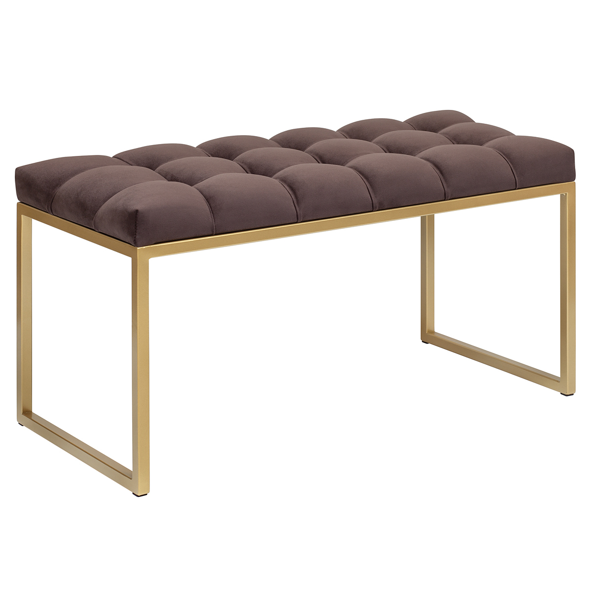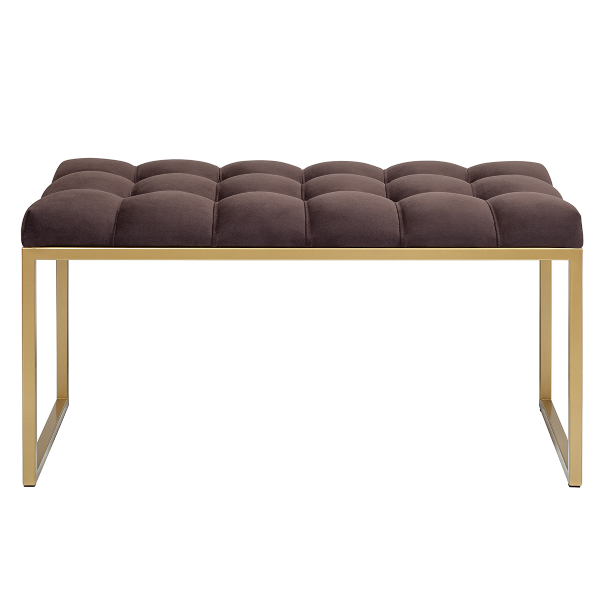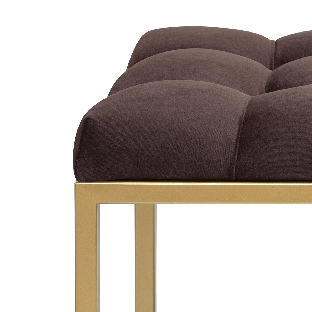 Банкетка ALBA MINI — это идеальное сочетание лаконичности и комфорта. Её золотистое металлическое основание и мягкое сиденье в каретной стяжке создают элегантный образ, который впишется в любой интерьер. Стильная банкетка-скамья станет отличным дополнением для прихожей, гостиной, гардеробной или кабинета. В спальне она прекрасно выполнит роль прикроватной банкетки.