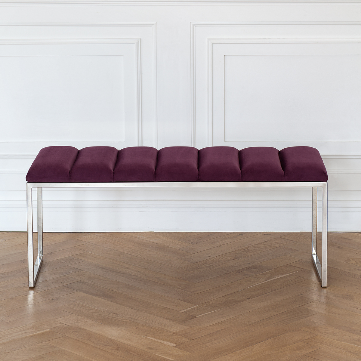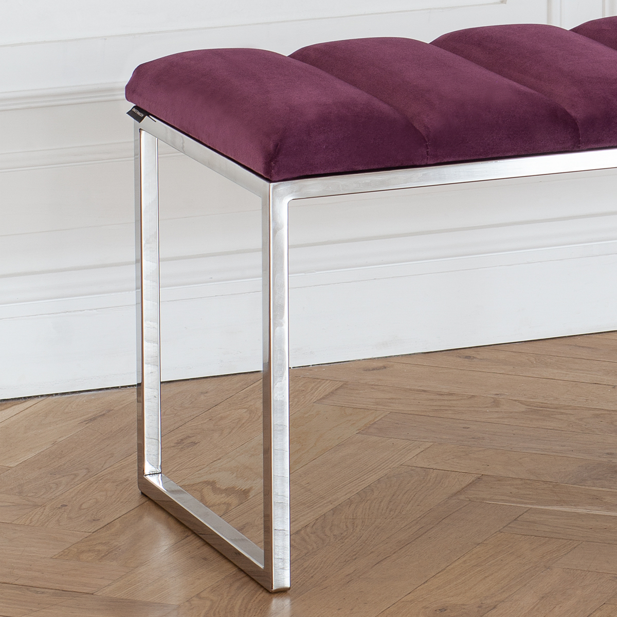 Банкетка ALBA с каркасом из нержавеющей стали и мягкой велюровой обивкой в стяжке Bulon привлекает внимание стильным дизайном и комфортом. Она идеально впишется в прихожую, спальню, гостиную, гардеробную или кабинет.