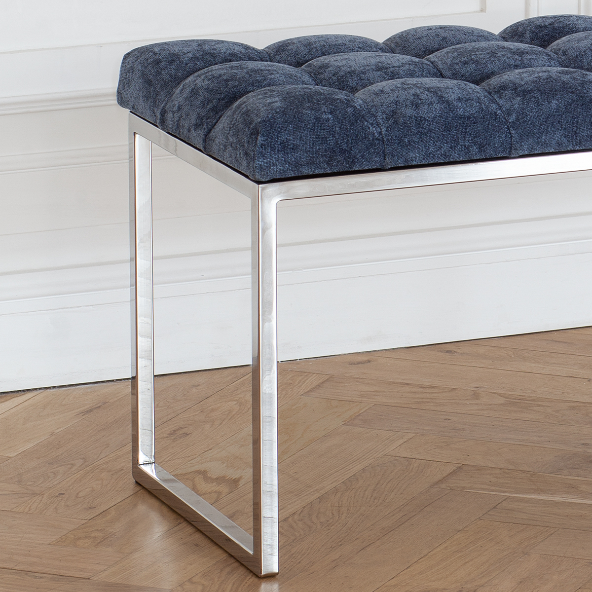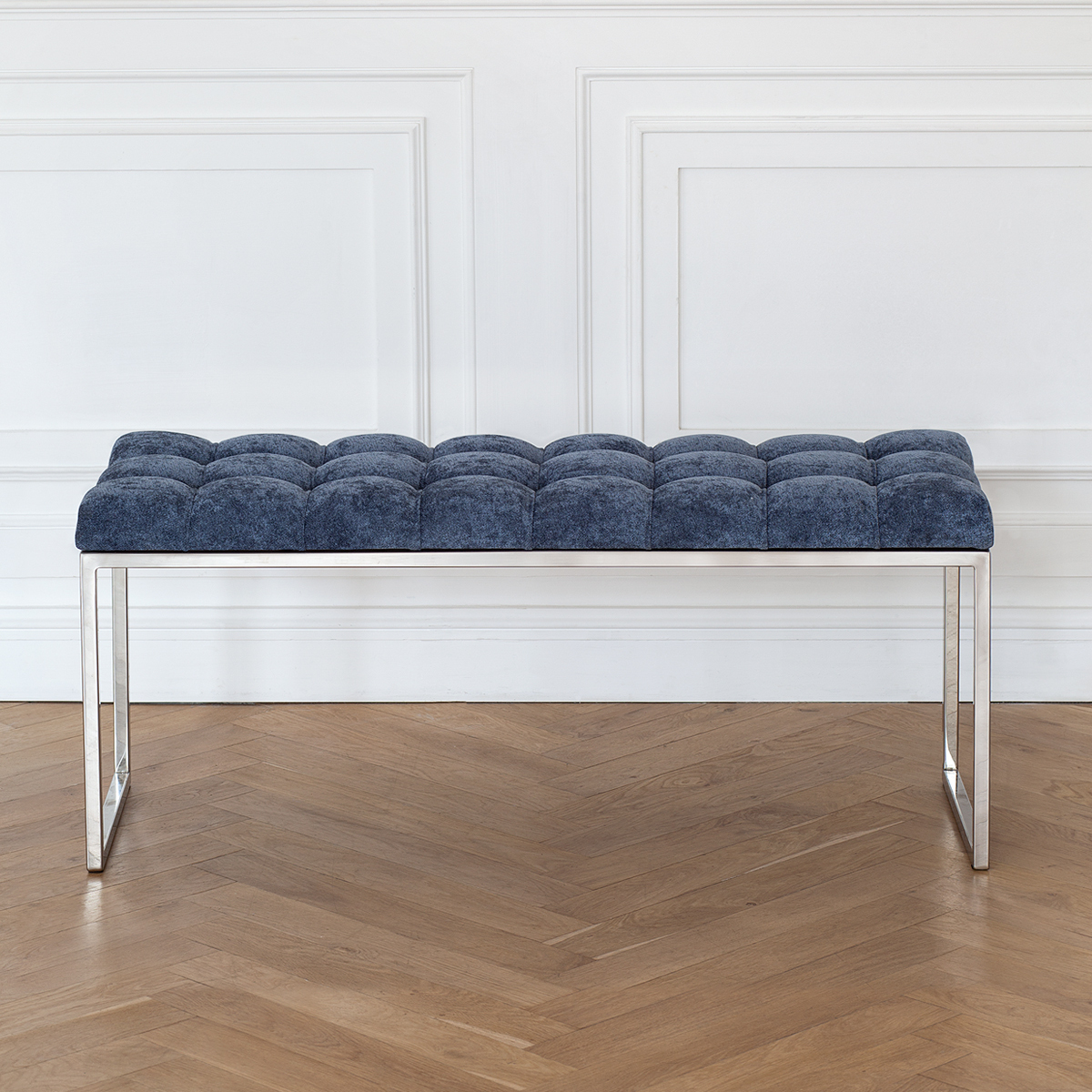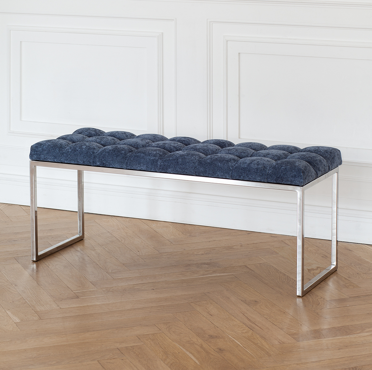 Банкетка ALBA с каркасом из нержавеющей стали и мягкой обивкой из микрошенилла в каретной стяжке привлекает внимание стильным дизайном и комфортом. Она идеально впишется в прихожую, спальню, гостиную, гардеробную или кабинет.