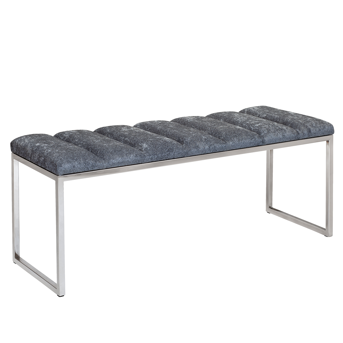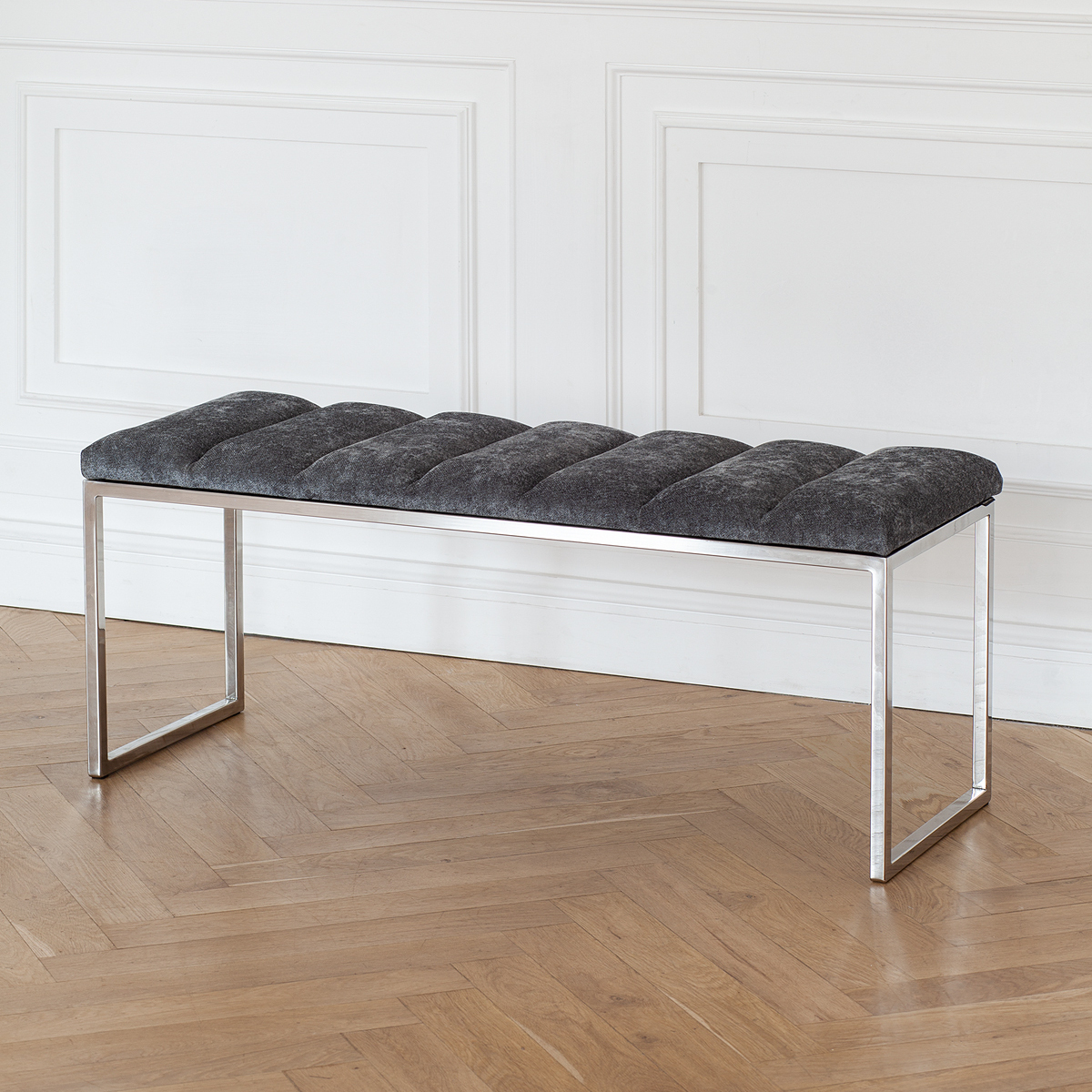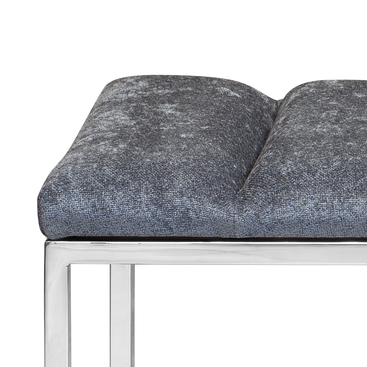 Сочетание обивки с серебристым оттенком и металлического каркаса делает банкетку стильной и надежной. Качественные материалы гарантируют сохранение внешнего вида на долгое время. Доставляем банкетку в собранном виде в надежной упаковке.