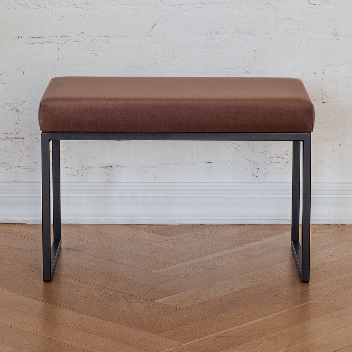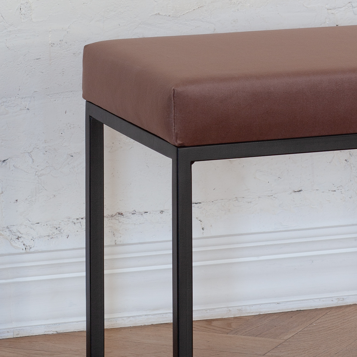 Сочетание подушки из искусственного велюра и металлического каркаса делает банкетку стильной и надежной. Качественные материалы гарантируют сохранение внешнего вида на долгое время.