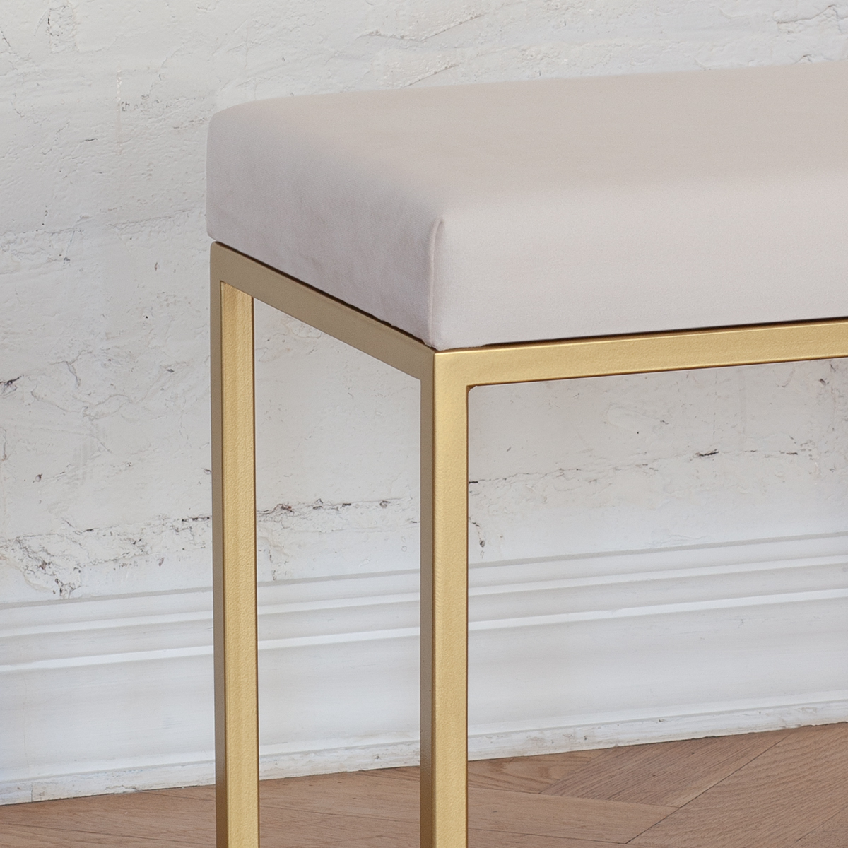 Банкетка ALBA SMART — это элегантное решение для вашего интерьера. Стальной каркас с золотым основанием и мягкая велюровая подушка создают стильный образ.