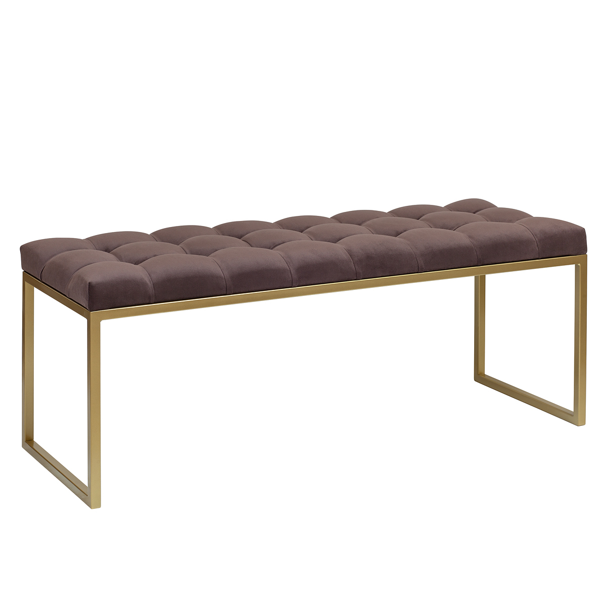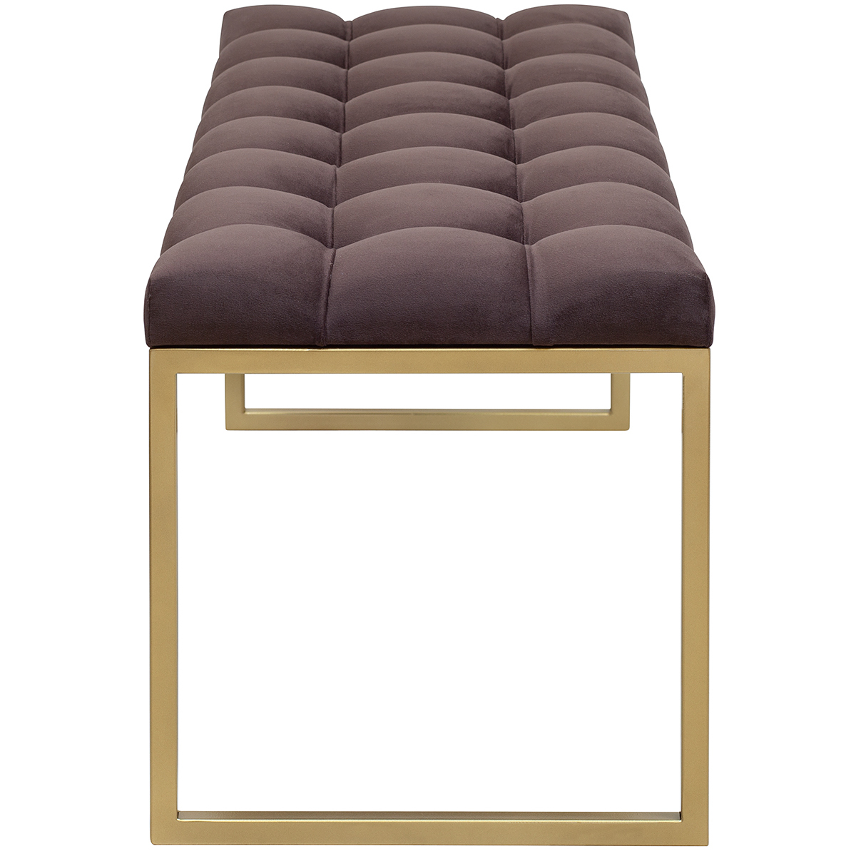Банкетка ALBA — это элегантное решение для вашего интерьера. Стальной каркас с золотым основанием и мягкая велюровая подушка в каретной стяжке создают стильный образ.