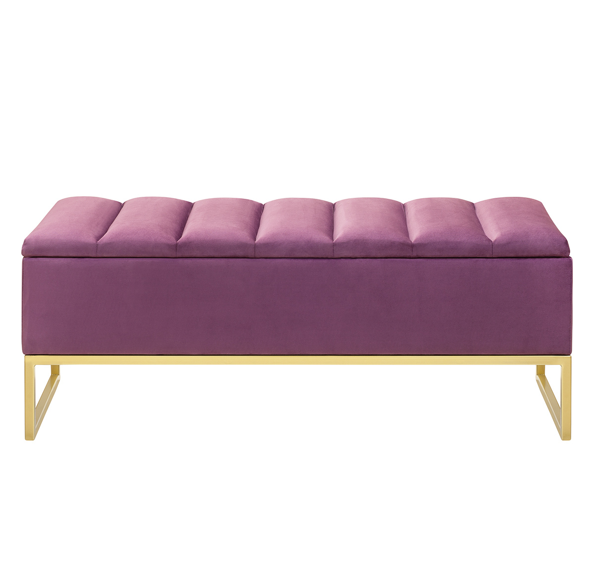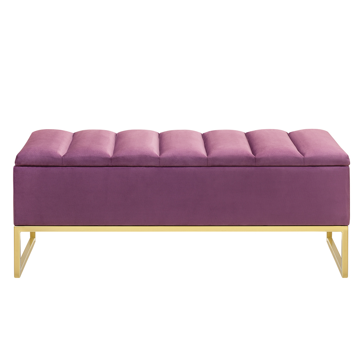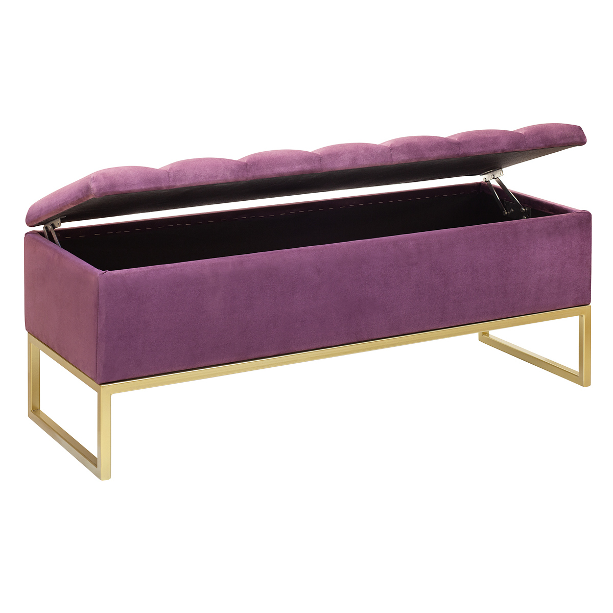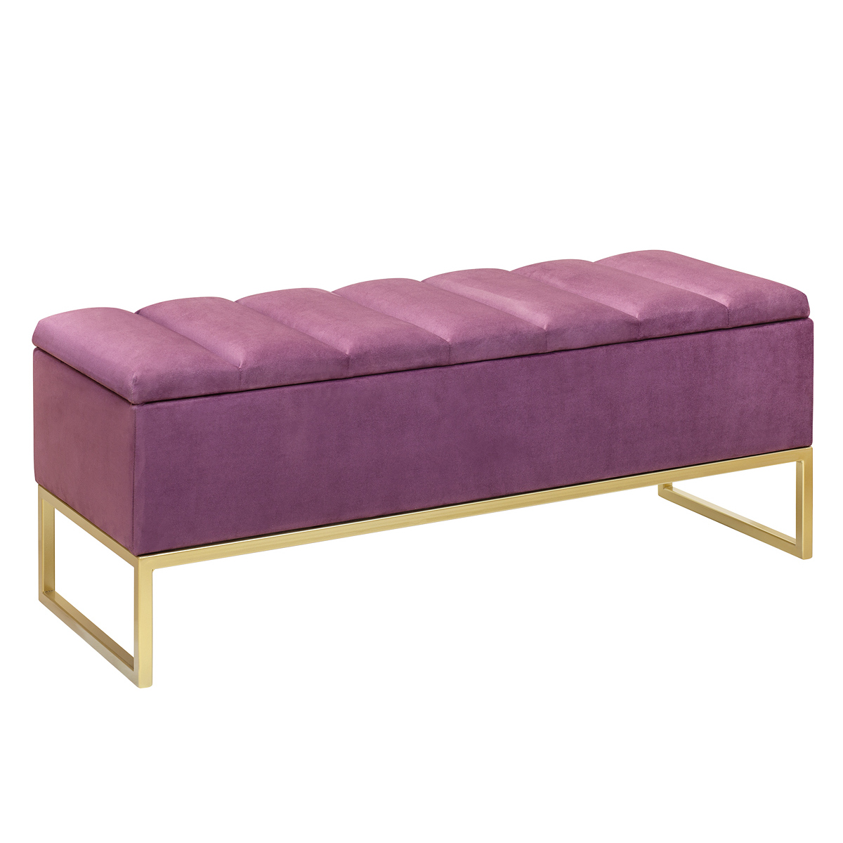 Банкетка CUBE с золотым основанием, мягкой велюровой подушкой в стяжке Bulon и ящиком для хранения — это стильное и функциональное решение для вашего интерьера.