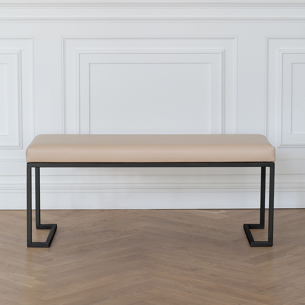 Банкетка OMEGA с черным основанием и мягкой подушкой из экокожи.
