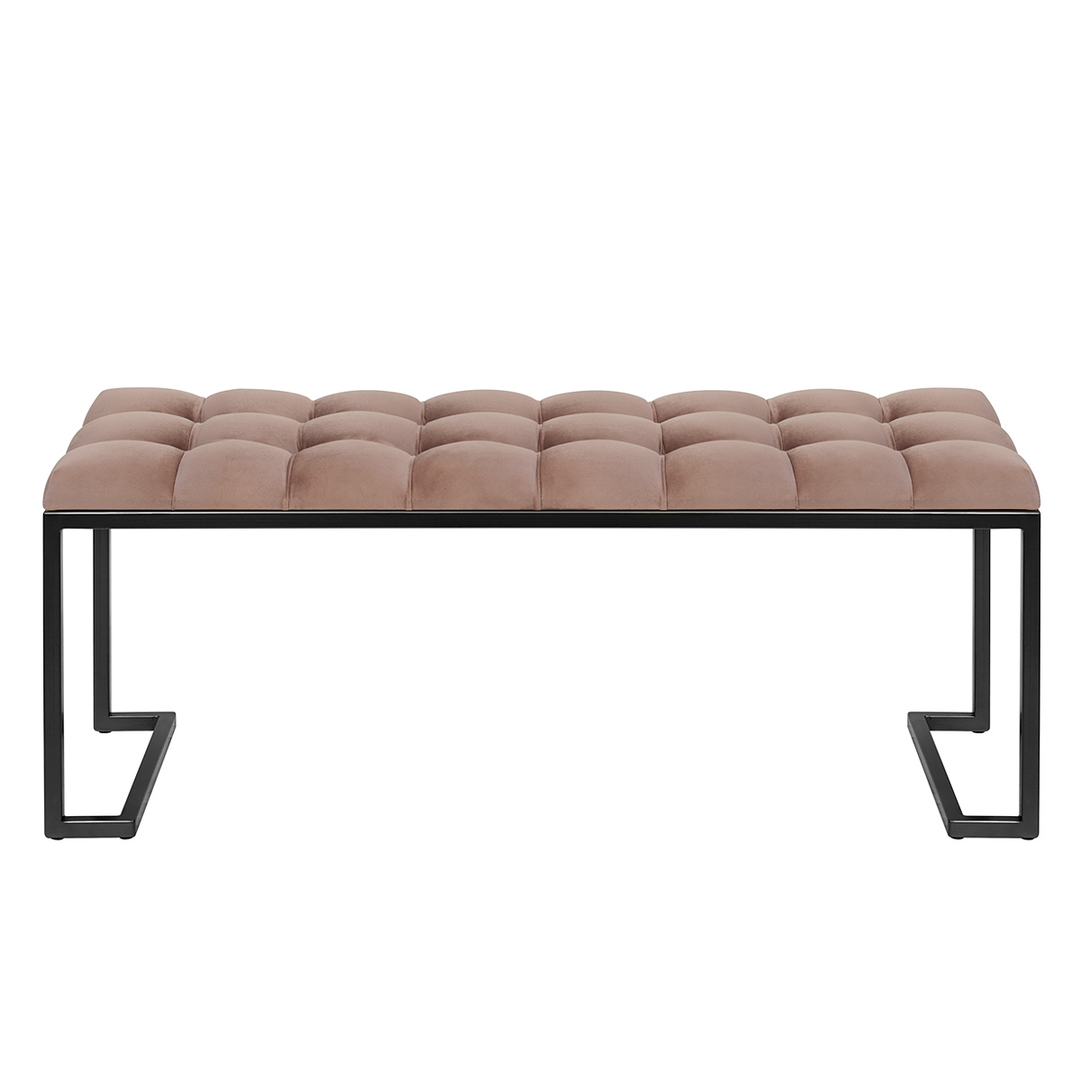 Банкетка OMEGA с черным основанием и мягкой велюровой подушкой в каретной стяжке.