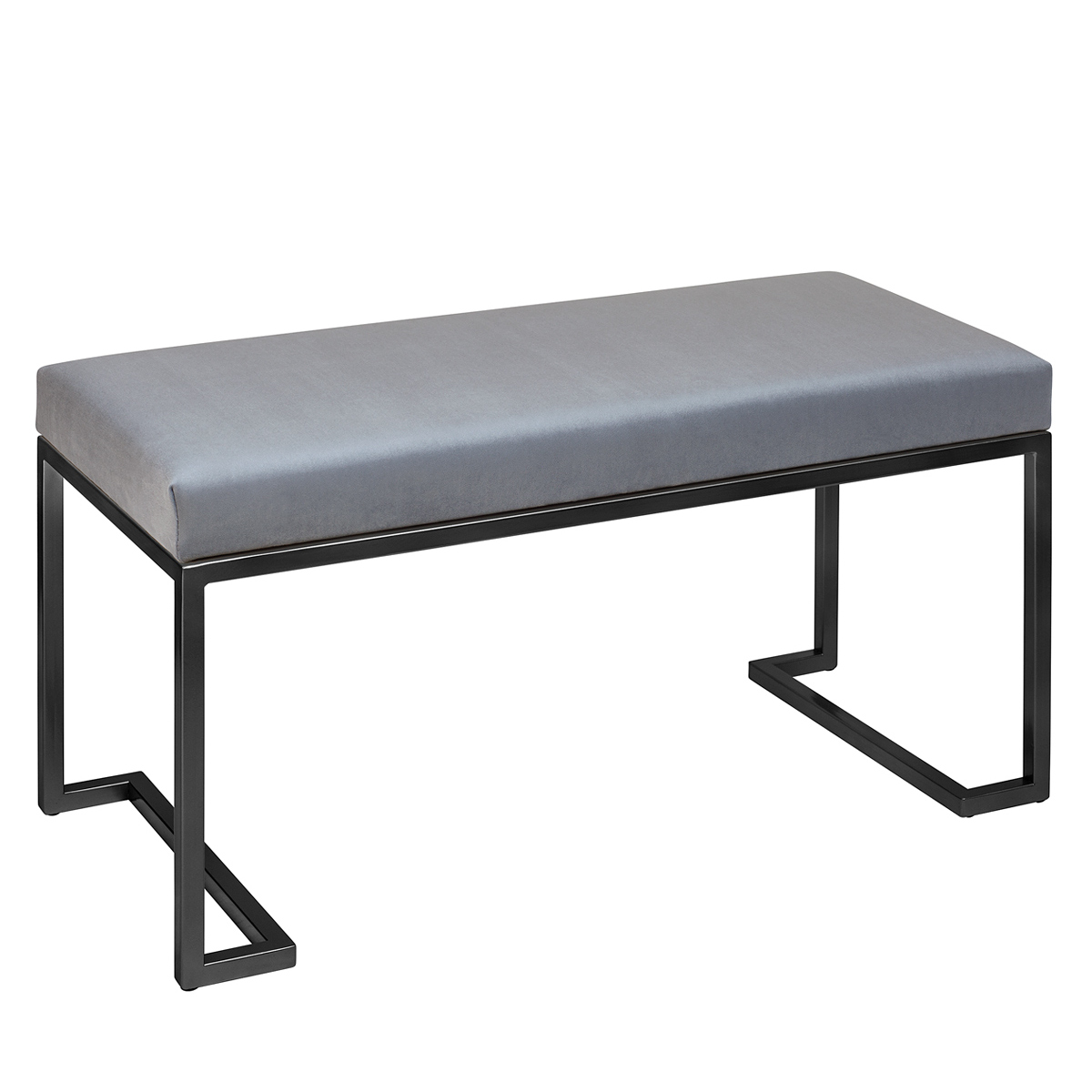Банкетка OMEGA MINI с черным основанием и мягкой велюровой подушкой.
