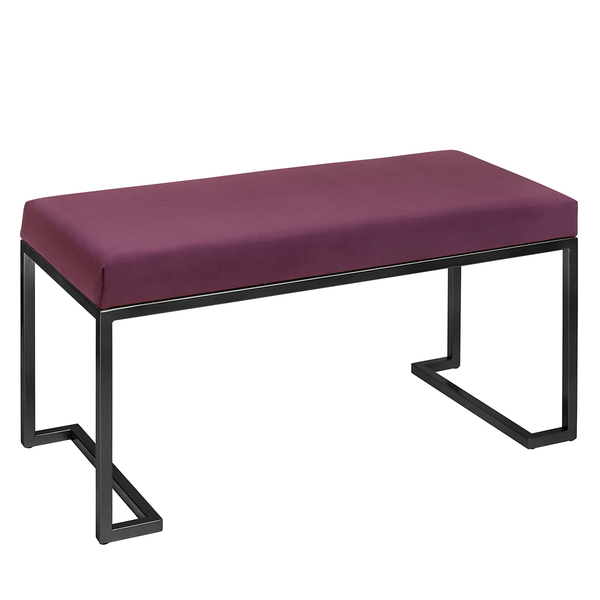 Банкетка OMEGA MINI с черным основанием и мягкой велюровой подушкой.