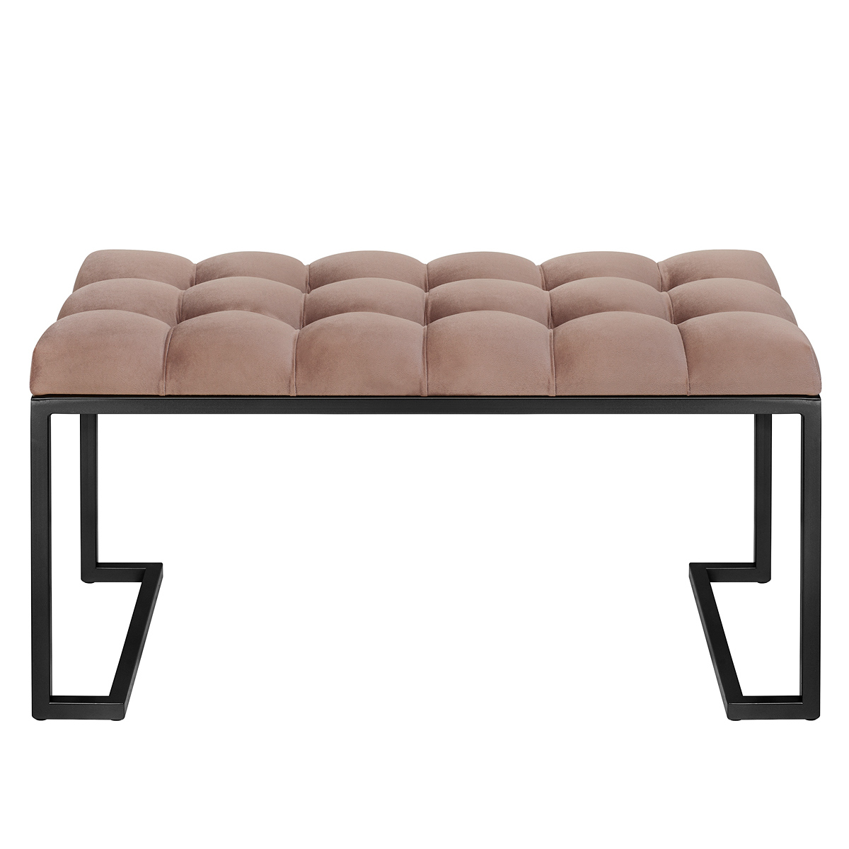 Банкетка OMEGA MINI с черным основанием и мягкой велюровой подушкой в каретной стяжке.
