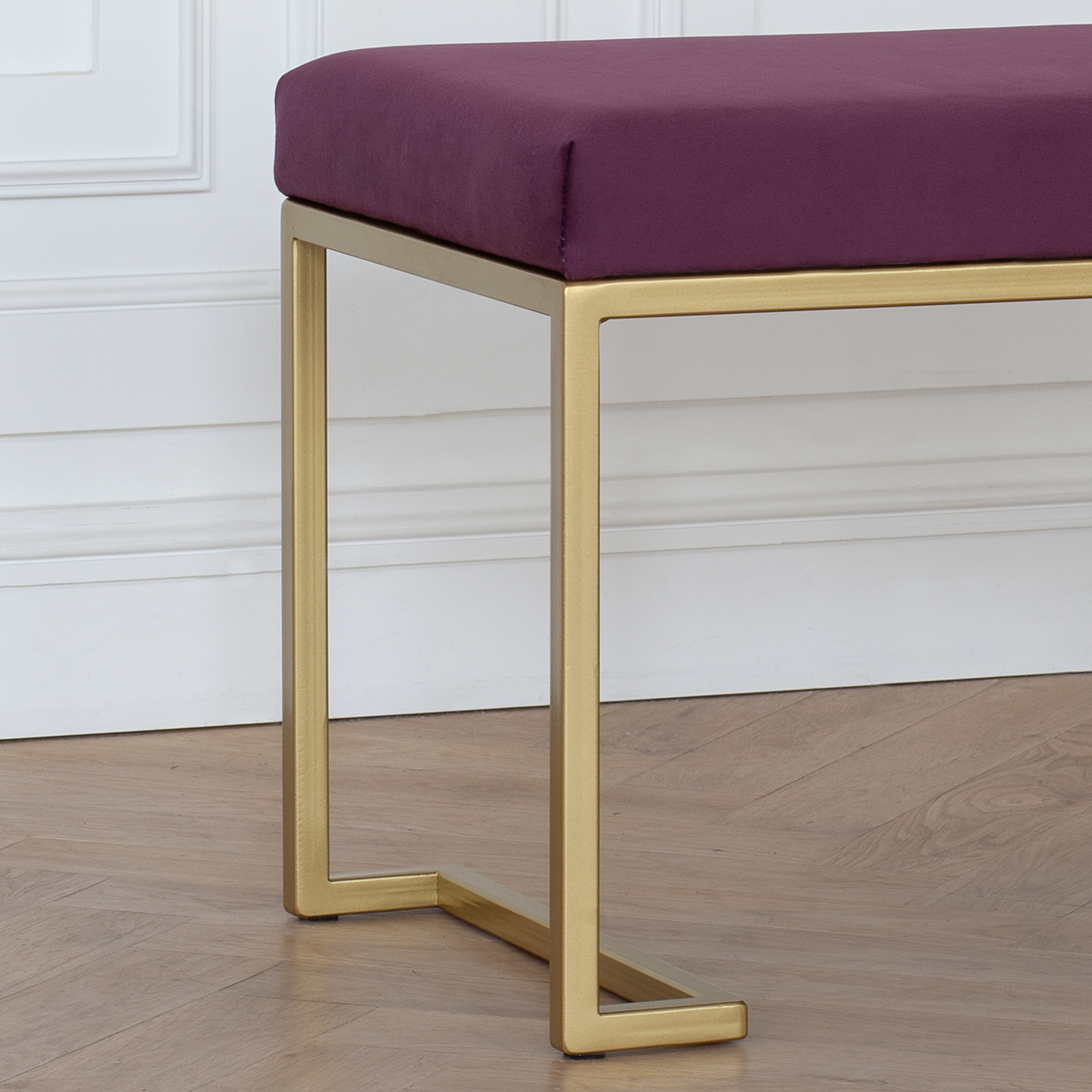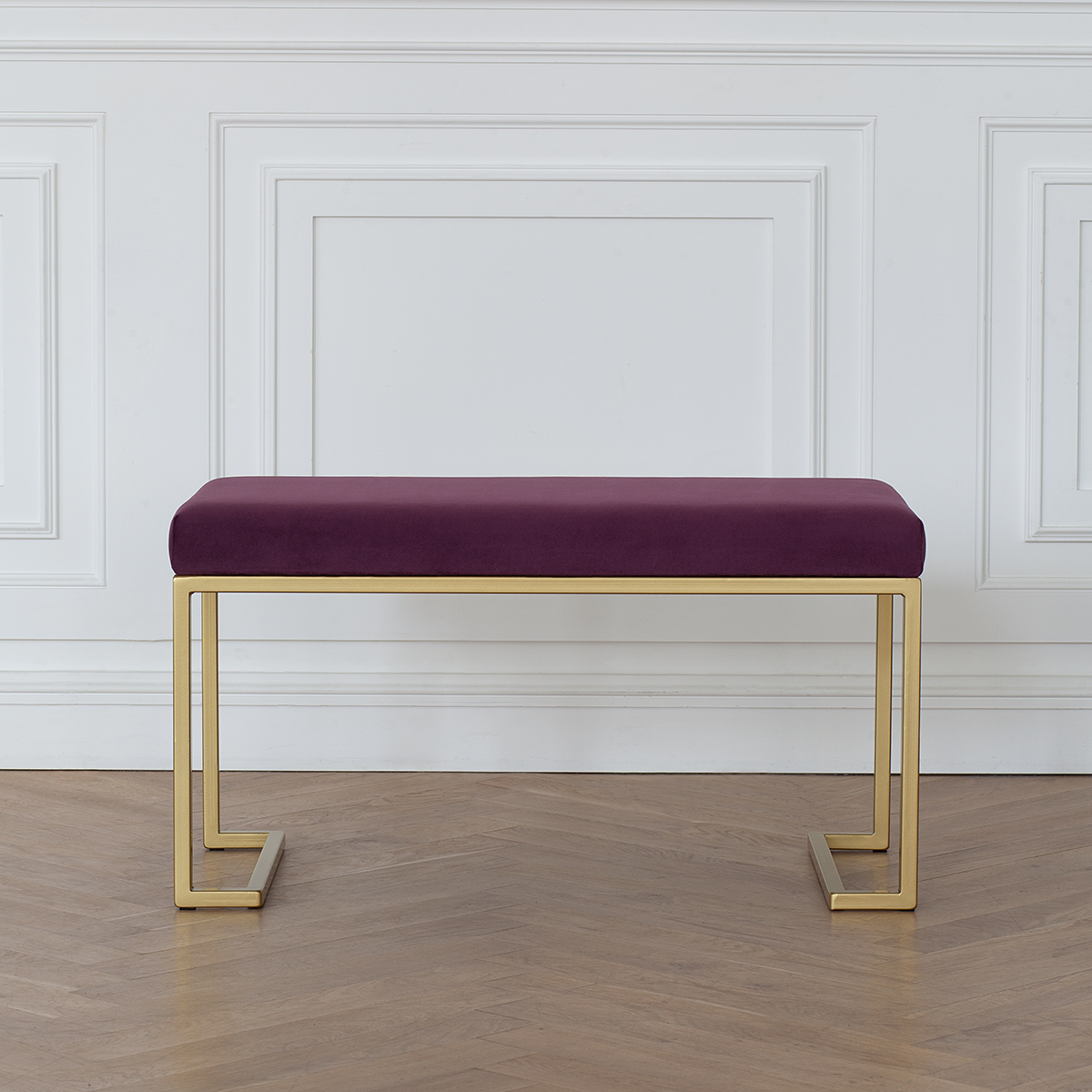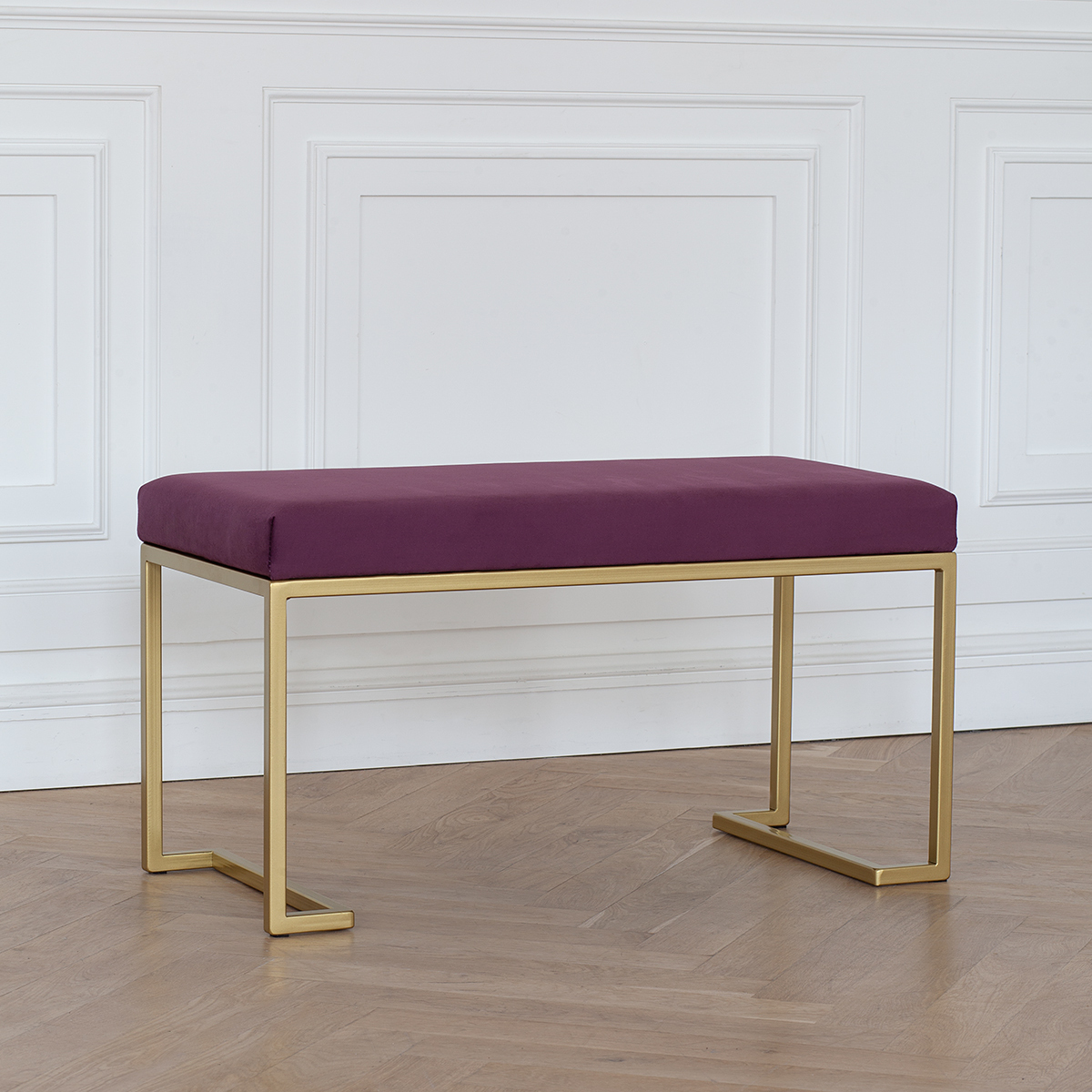 Банкетка OMEGA MINI с золотистым основанием и мягкой велюровой подушкой.
