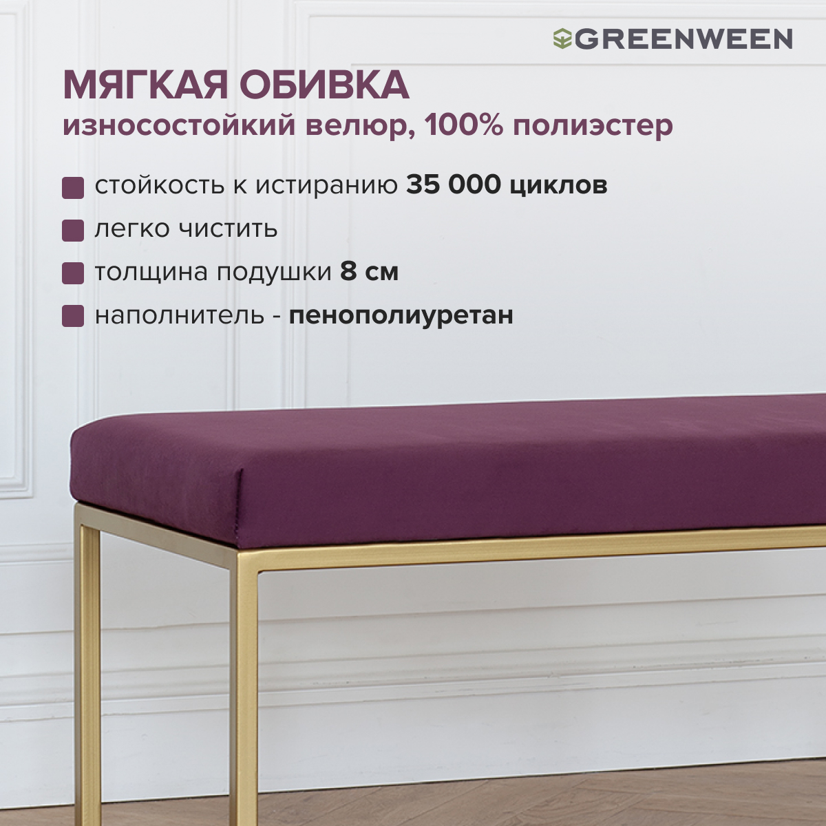 Банкетка OMEGA MINI — это элегантное и практичное решение для вашего интерьера. Стальной каркас с золотым основанием и мягкая велюровая подушка создают стильный образ.