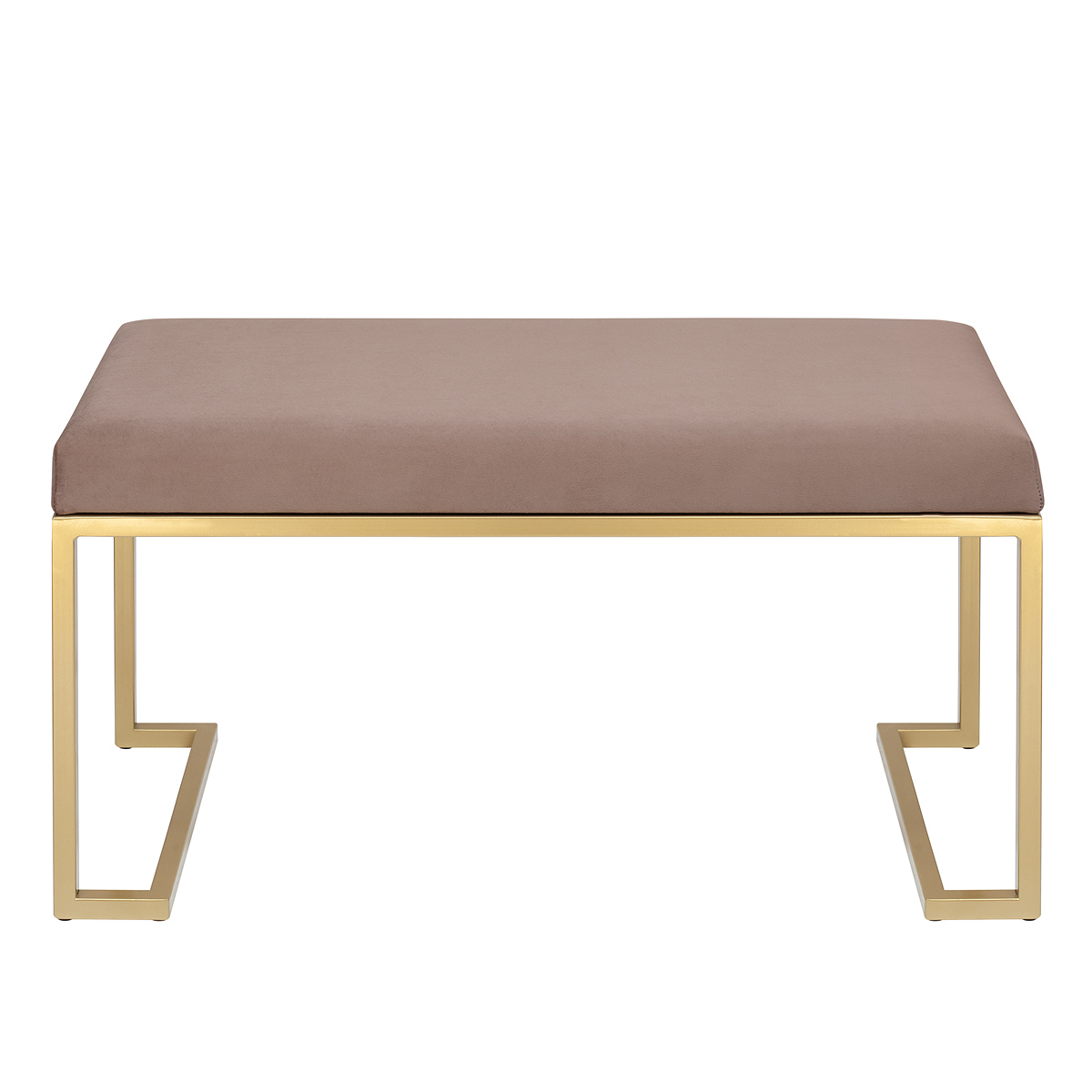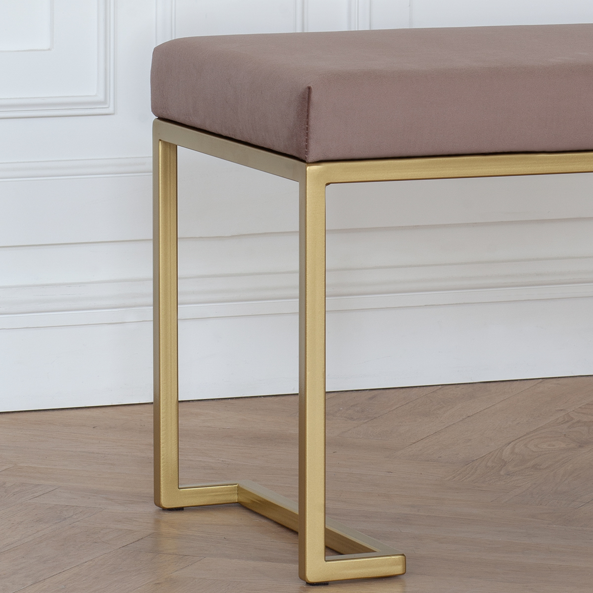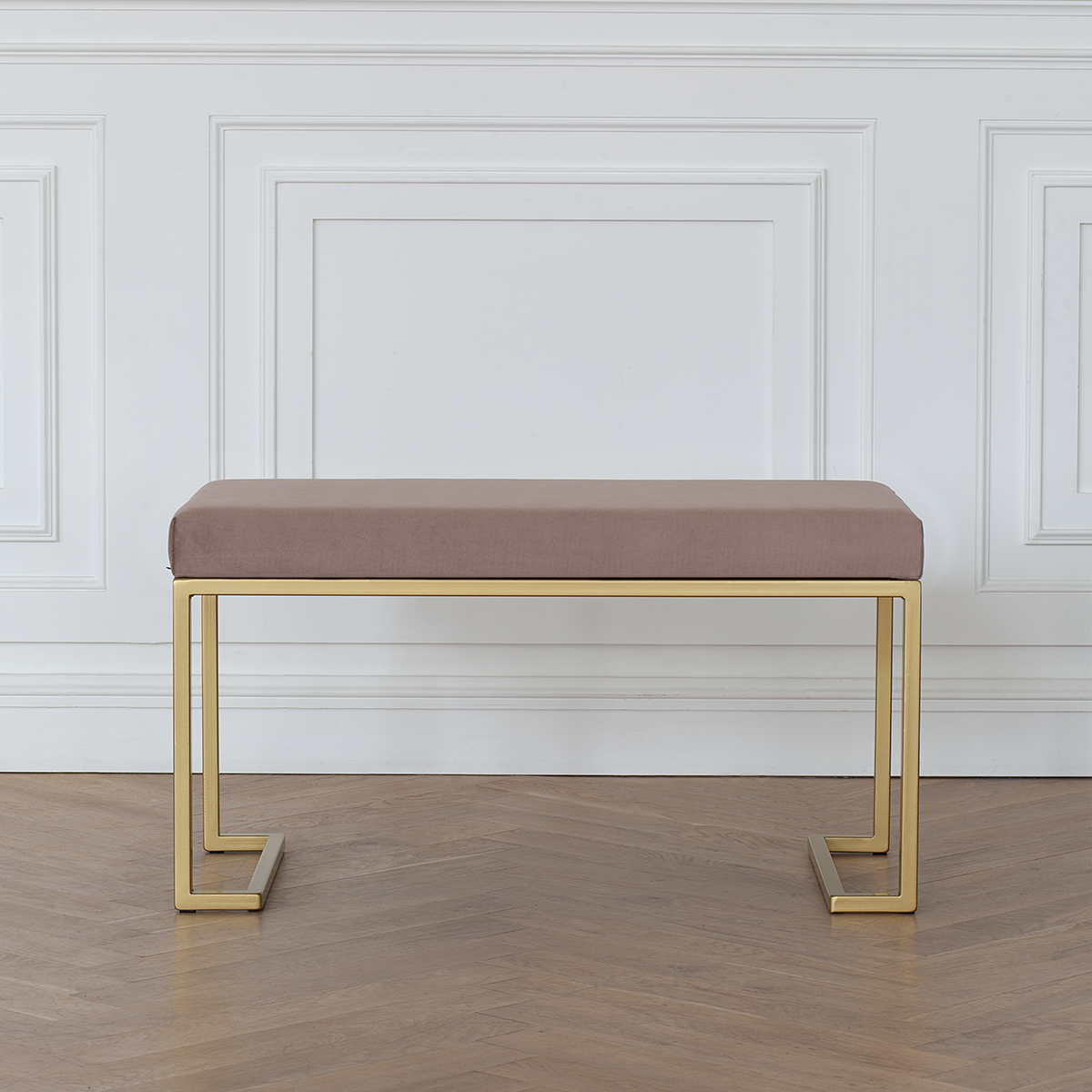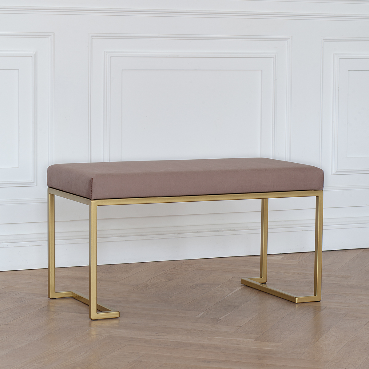 Банкетка OMEGA MINI с золотистым основанием и мягкой велюровой подушкой.