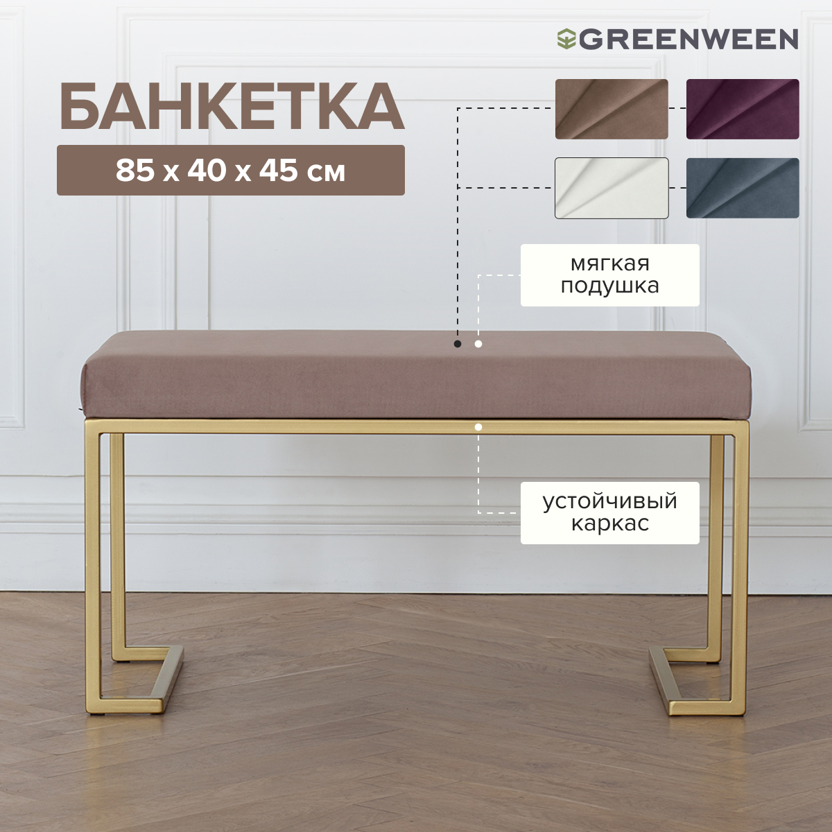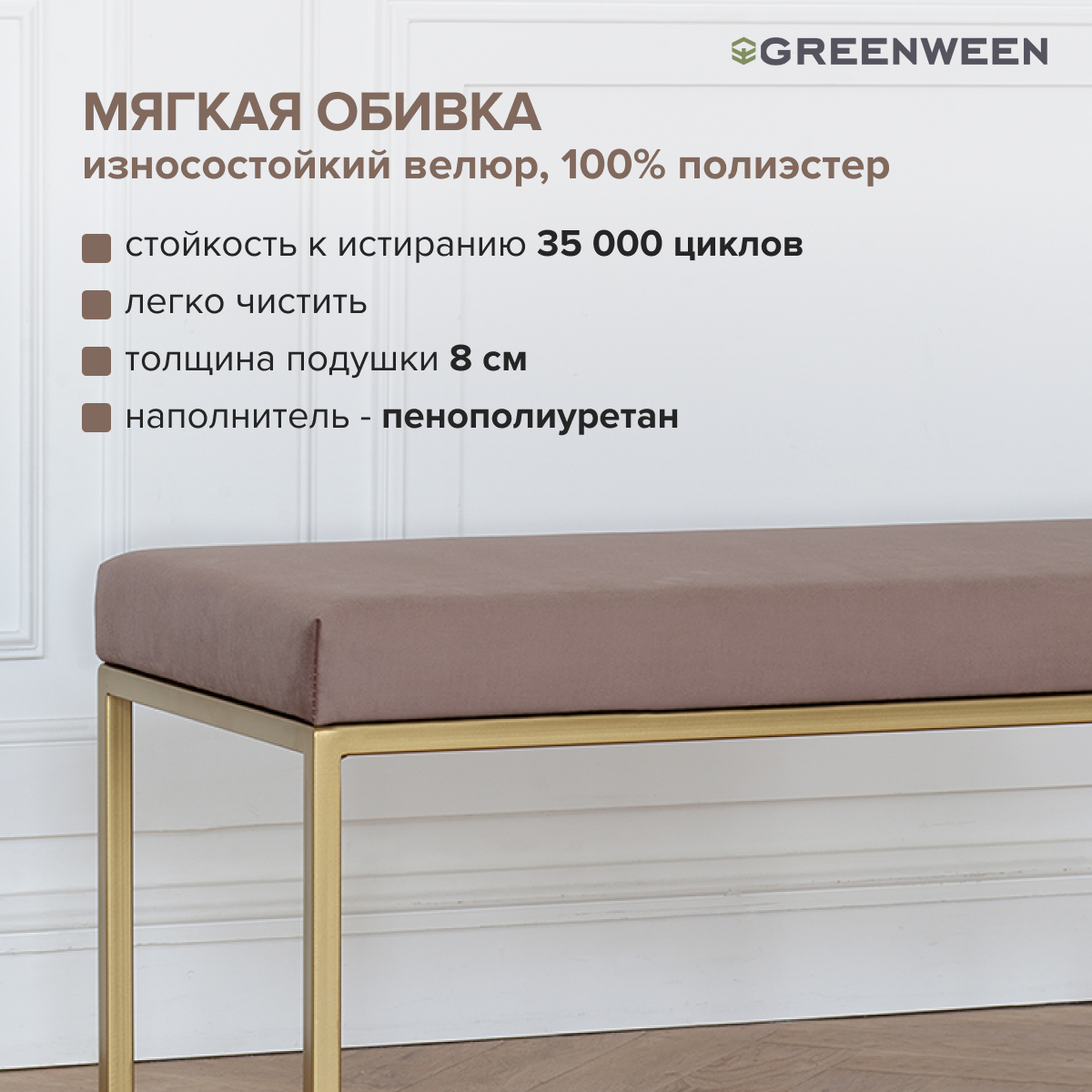 Банкетка OMEGA MINI — это элегантное и практичное решение для вашего интерьера. Стальной каркас с золотым основанием и мягкая велюровая подушка создают стильный образ.