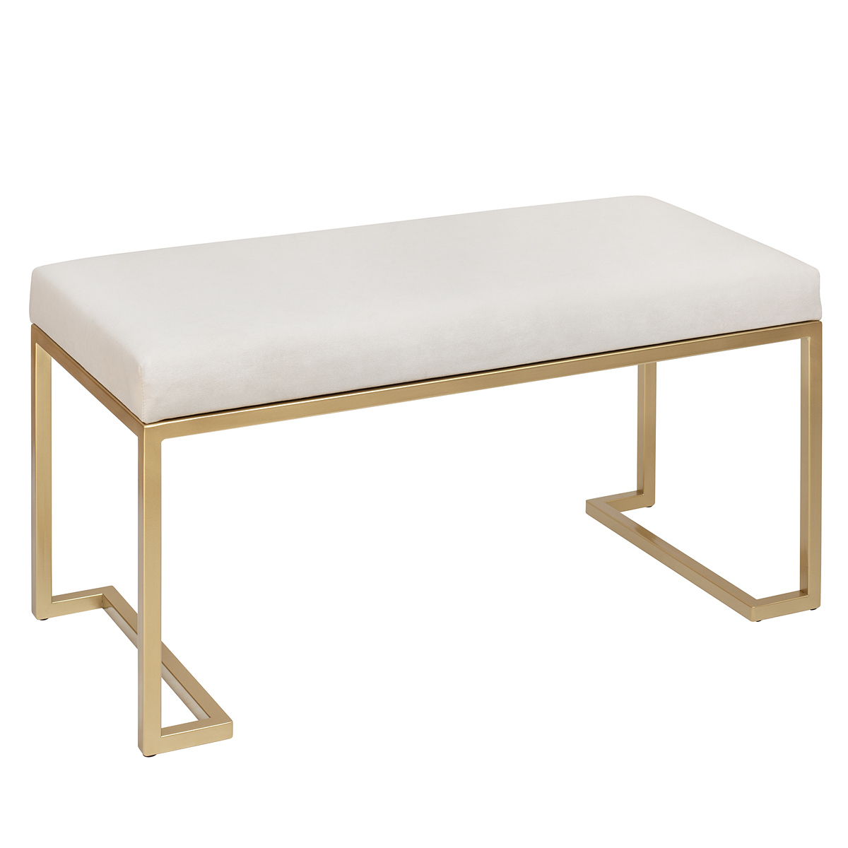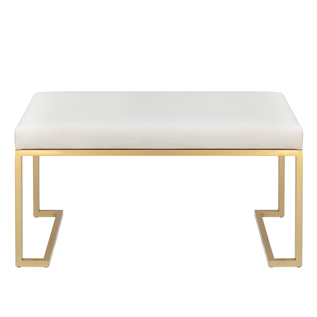 Банкетка OMEGA MINI с золотистым основанием и мягкой велюровой подушкой.