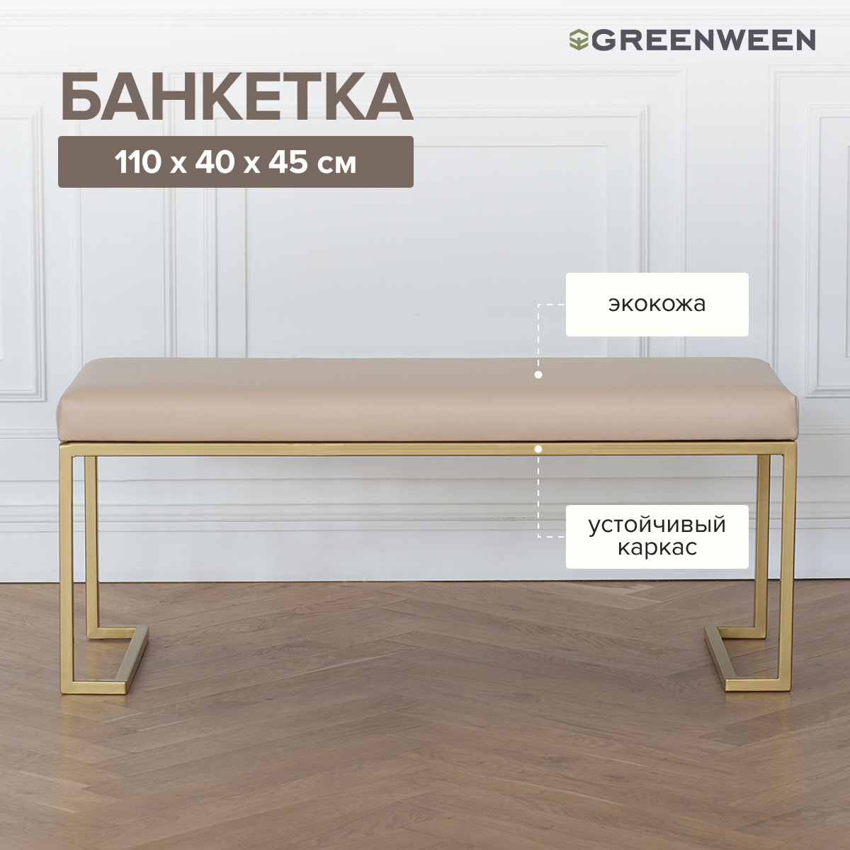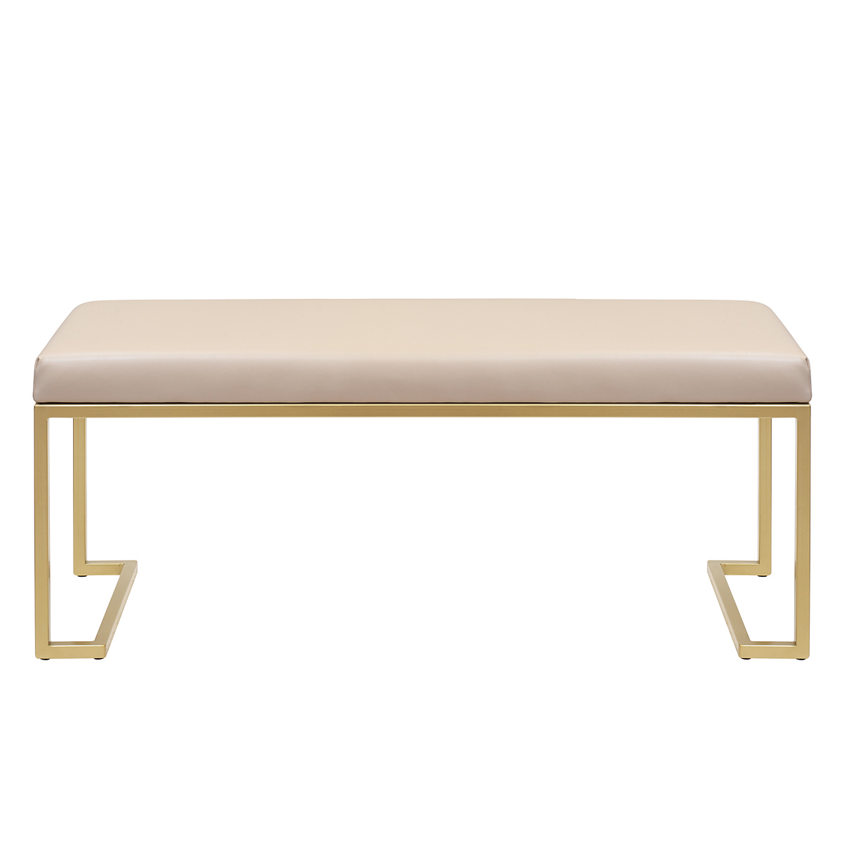 Банкетка OMEGA с золотистым основанием и мягкой подушкой из экокожи.