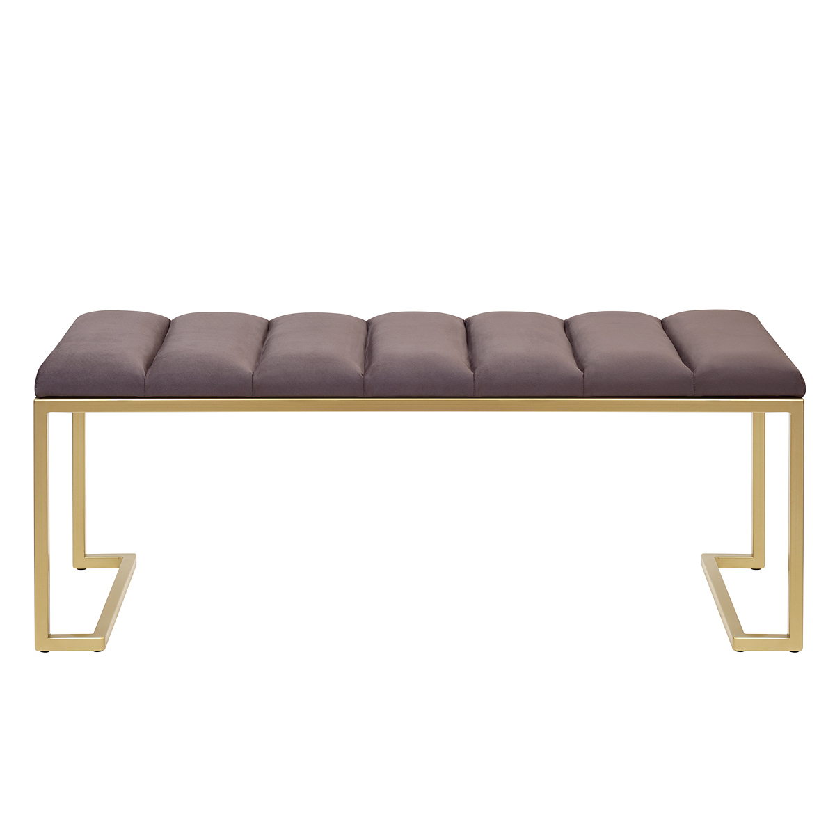 Банкетка OMEGA с золотым основанием и мягкой велюровой подушкой в стяжке Bulon.