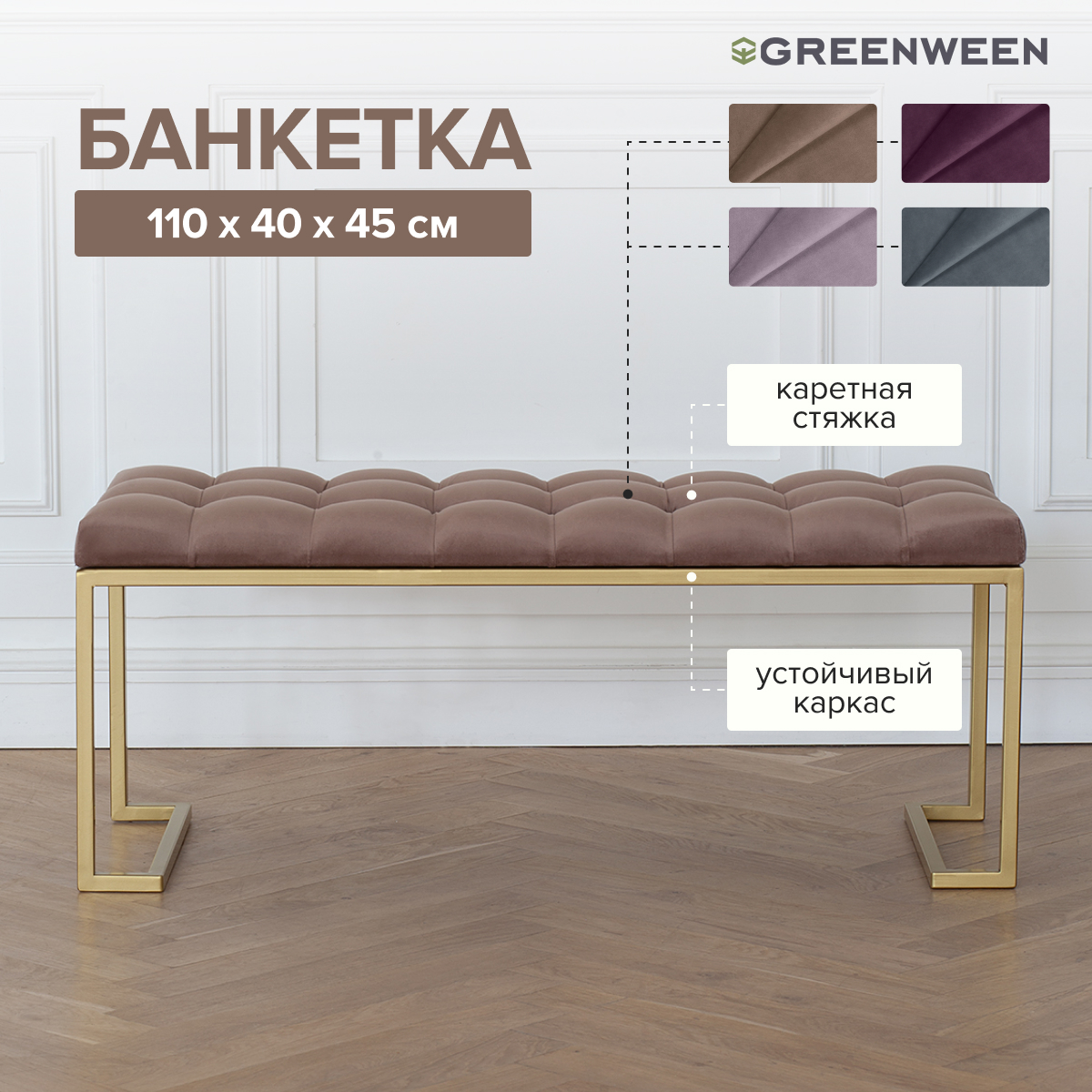 Банкетка OMEGA — это элегантное и практичное решение для вашего интерьера. Стальной каркас с золотым основанием и мягкая велюровая подушка в каретной стяжке создают стильный образ.