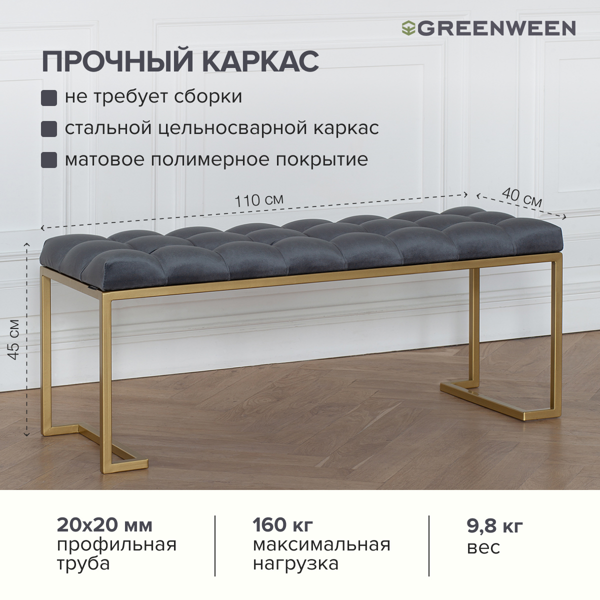 Основание банкетки сделано из стали с полимерным покрытием. Наше собственное производство GreenWeen гарантирует надежность и эстетичность сварных швов металлической мебели.