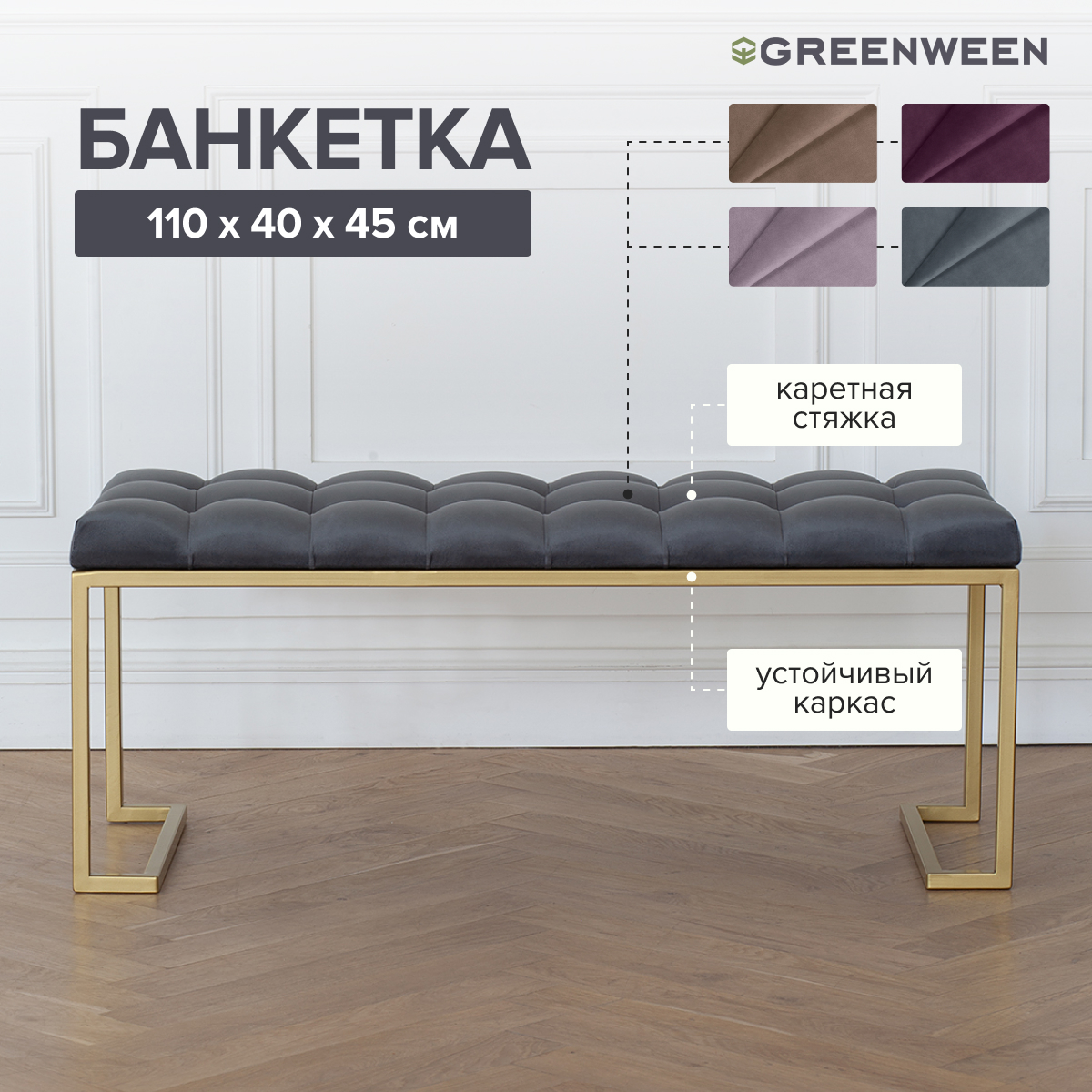 Банкетка OMEGA — это элегантное и практичное решение для вашего интерьера. Стальной каркас с золотым основанием и мягкая велюровая подушка в каретной стяжке создают стильный образ.