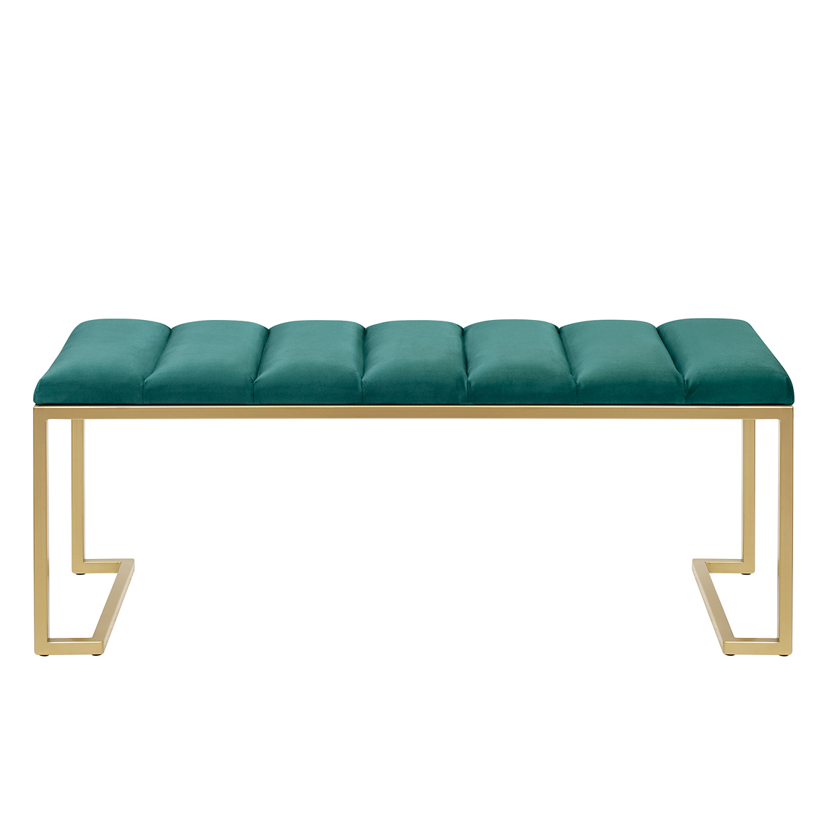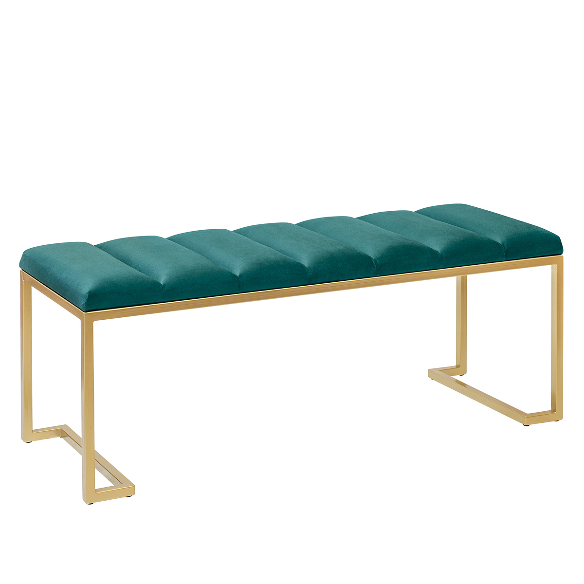 Банкетка OMEGA с золотистым основанием и мягкой велюровой подушкой в стяжке Bulon.