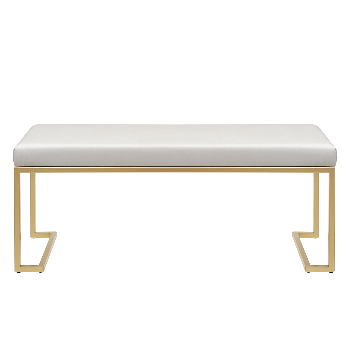 Банкетка OMEGA с золотистым основанием и мягкой велюровой подушкой.