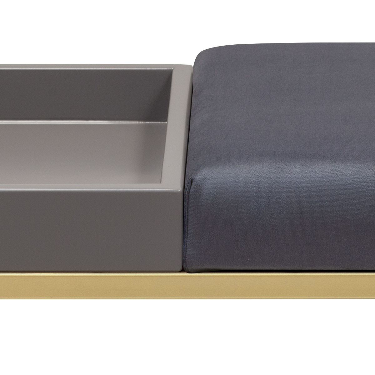 Банкетка RUBY BOX — это стильный и функциональный предмет мебели. У нее золотое основание, мягкое сиденье и удобные полки для обуви и аксессуаров.