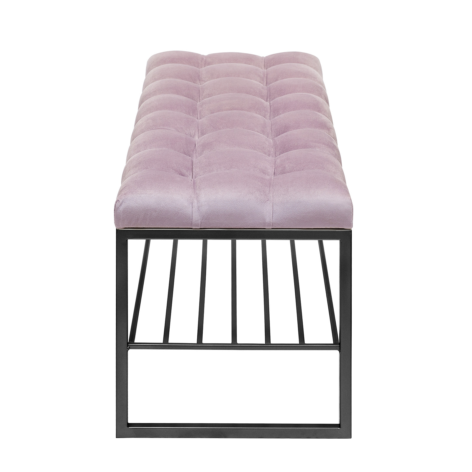 Банкетка RUBY с черным основанием и мягкой велюровой подушкой в каретной стяжке.