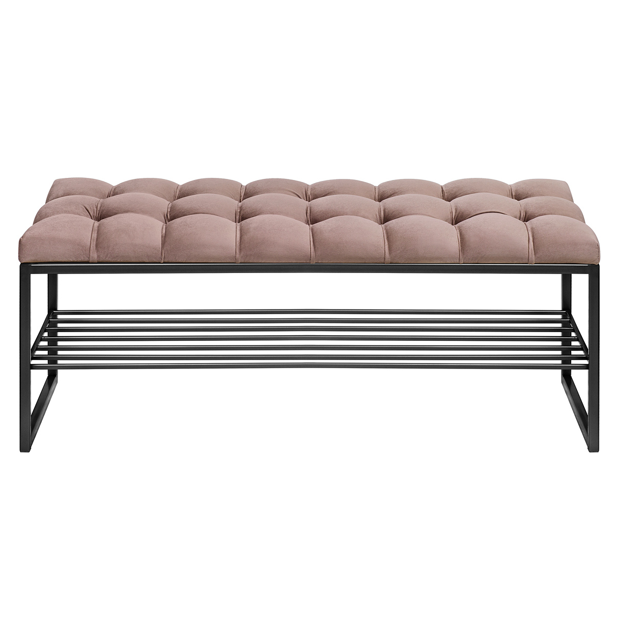 Банкетка RUBY с черным основанием и мягкой велюровой подушкой в каретной стяжке.