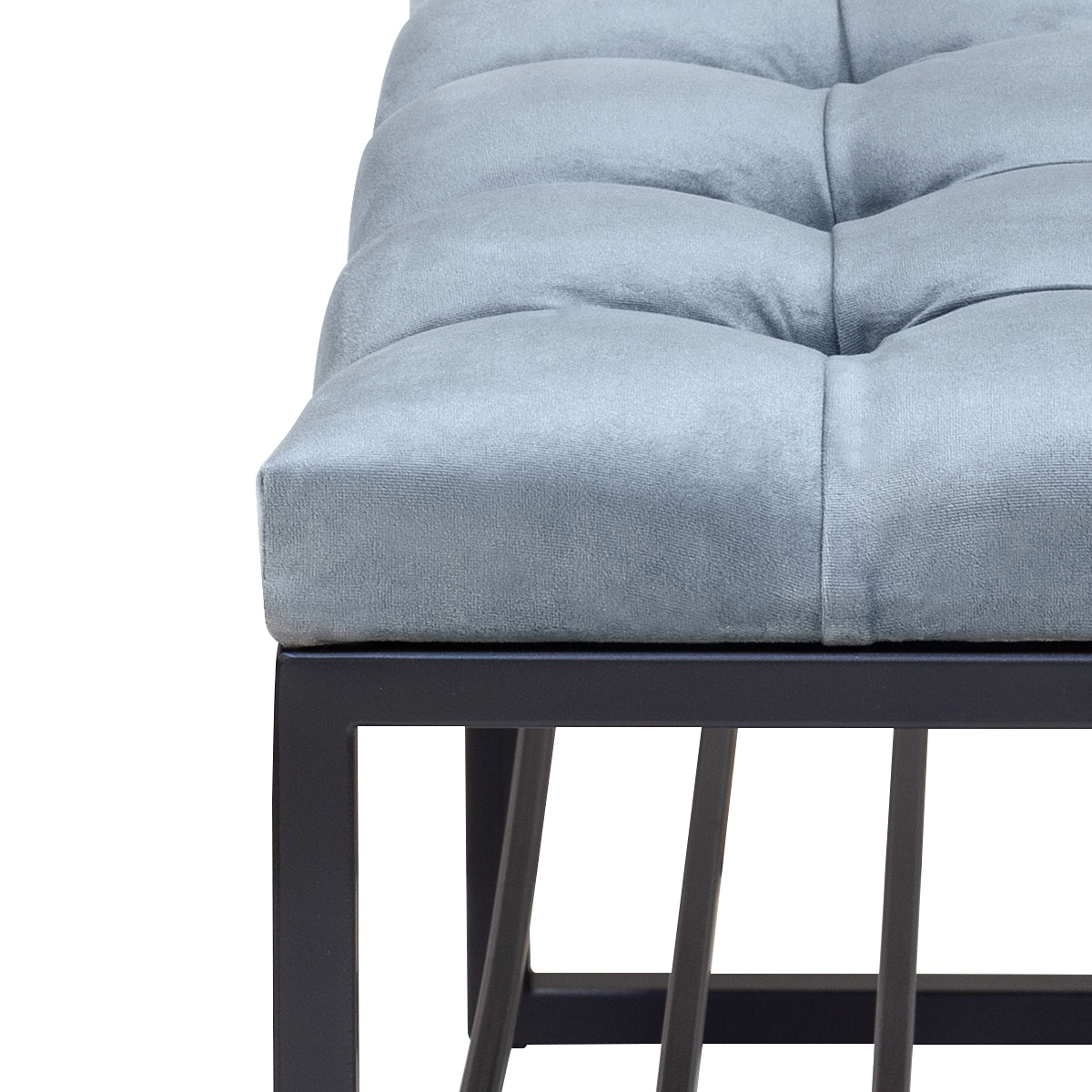 Банкетка RUBY MINI с черным основанием и мягкой велюровой подушкой в каретной стяжке.