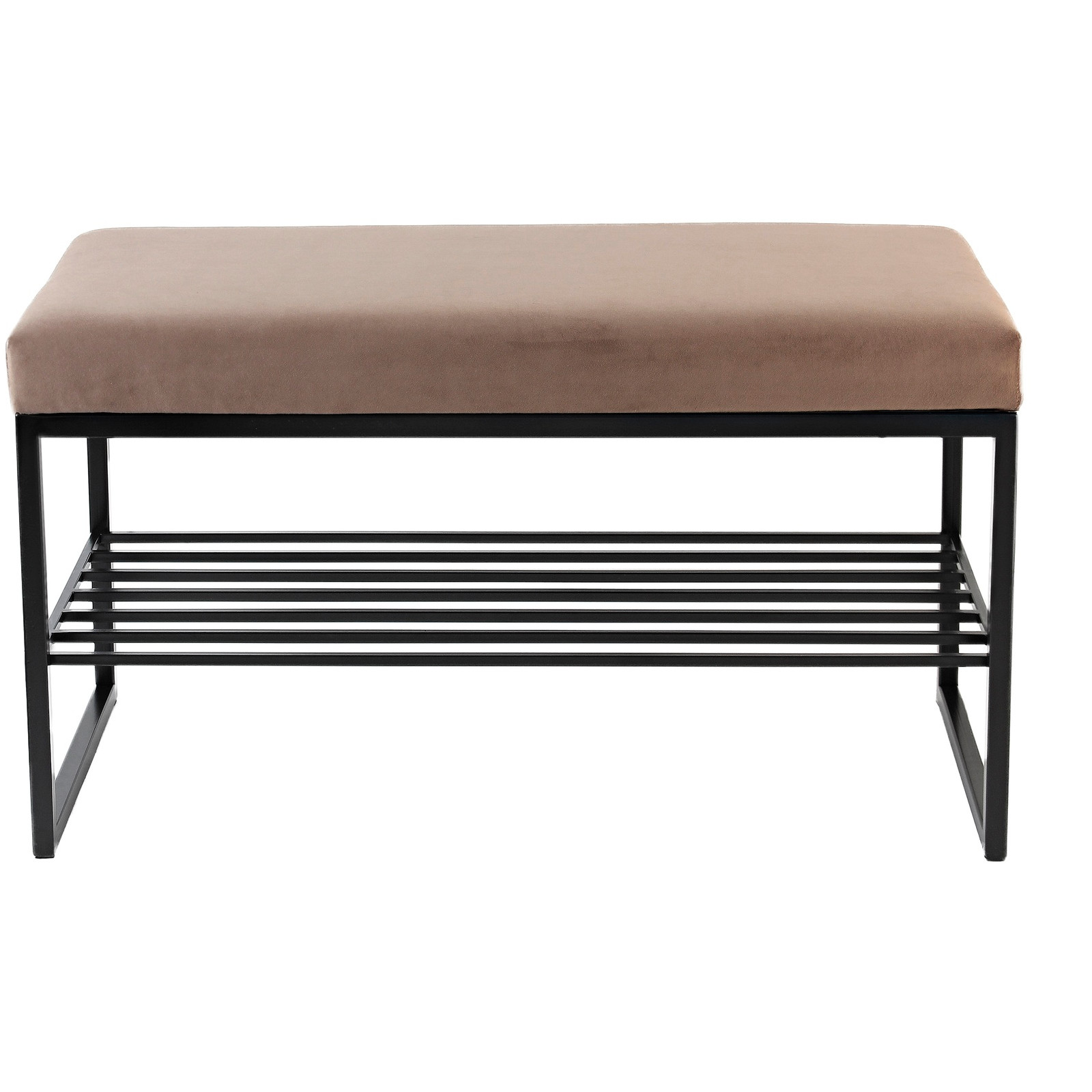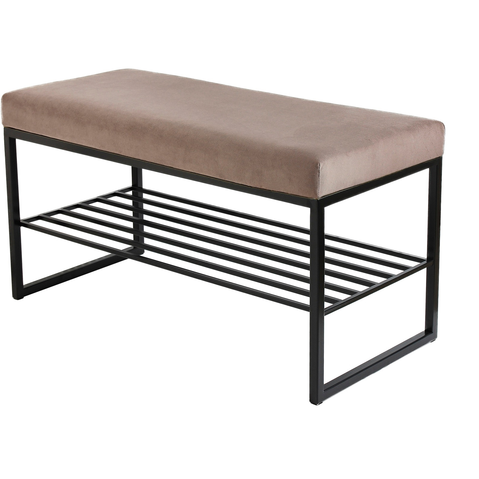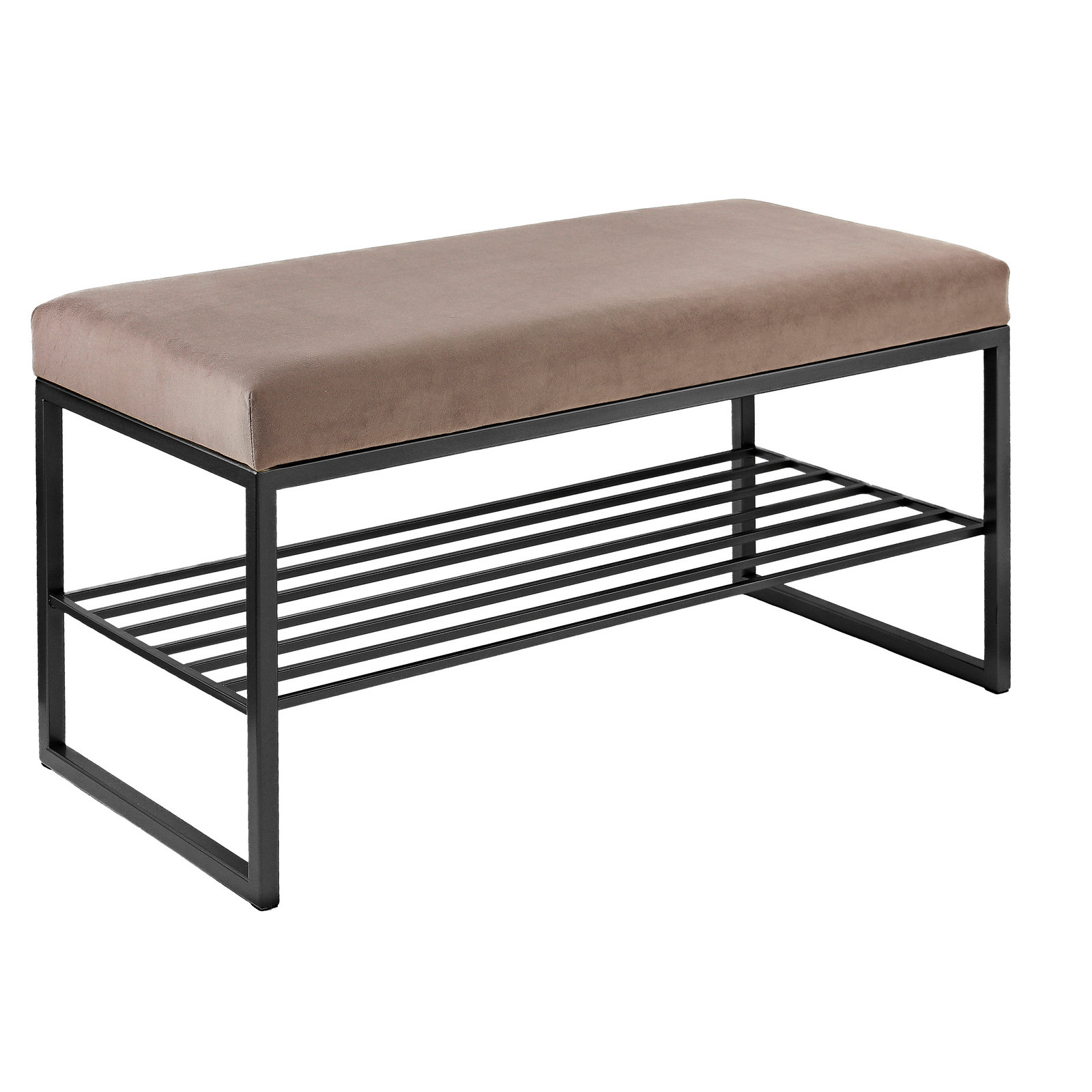 Банкетка RUBY MINI — это стильный и функциональный предмет мебели. У нее черное основание, мягкое сиденье и удобная полка для обуви.