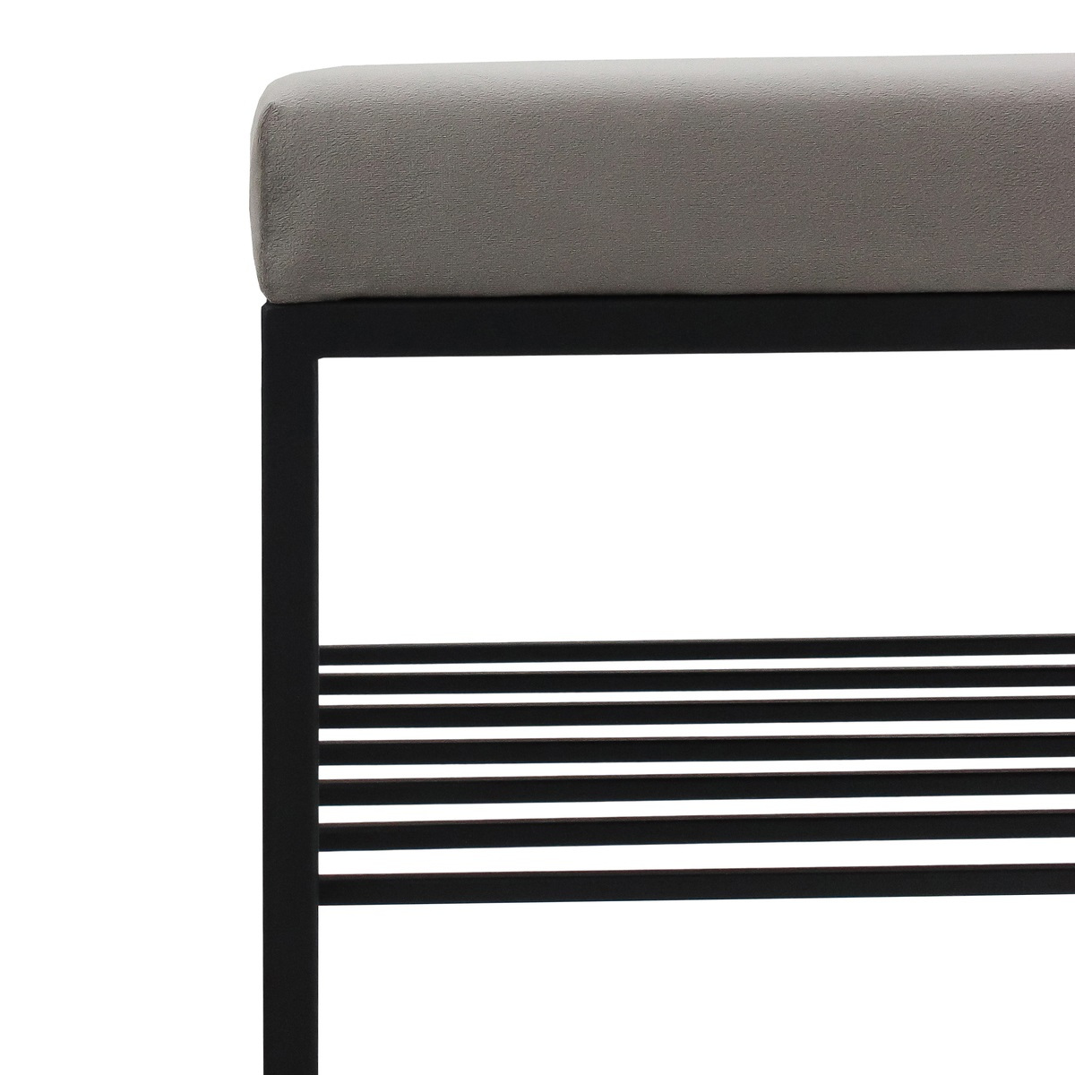 Банкетка RUBY MINI — это стильный и функциональный предмет мебели. У нее черное основание, мягкое сиденье и удобная полка для обуви.