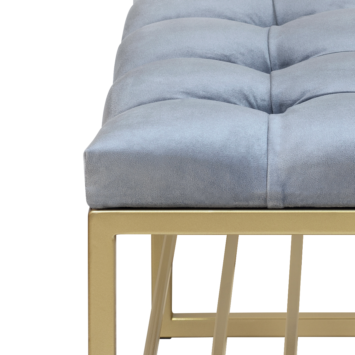 Банкетка RUBY MINI с золотым основанием и мягкой велюровой подушкой в каретной стяжке.