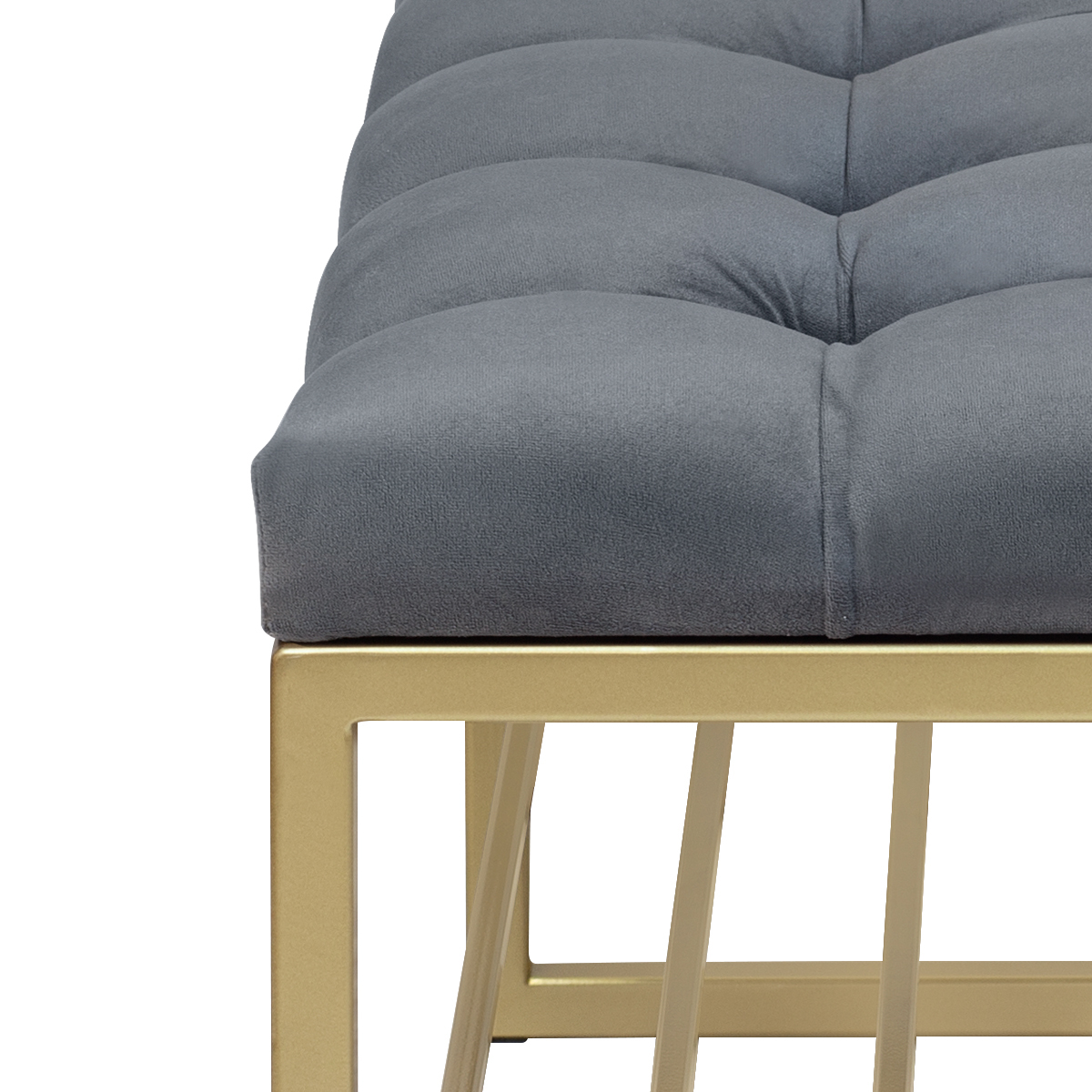 Банкетка RUBY MINI с золотым основанием и мягкой велюровой подушкой в каретной стяжке.