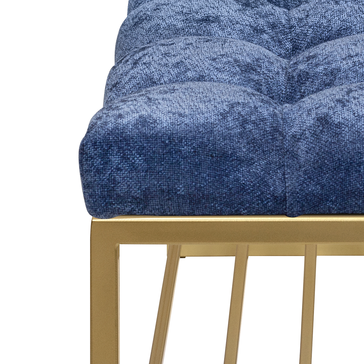 Банкетка RUBY с золотым основанием и мягкой подушкой из микрошенилла в каретной стяжке.