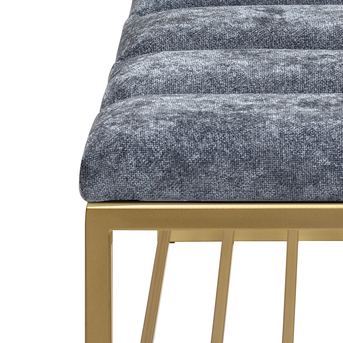 Банкетка RUBY с золотым основанием и мягкой подушкой из микрошенилла в стяжке Bulon.