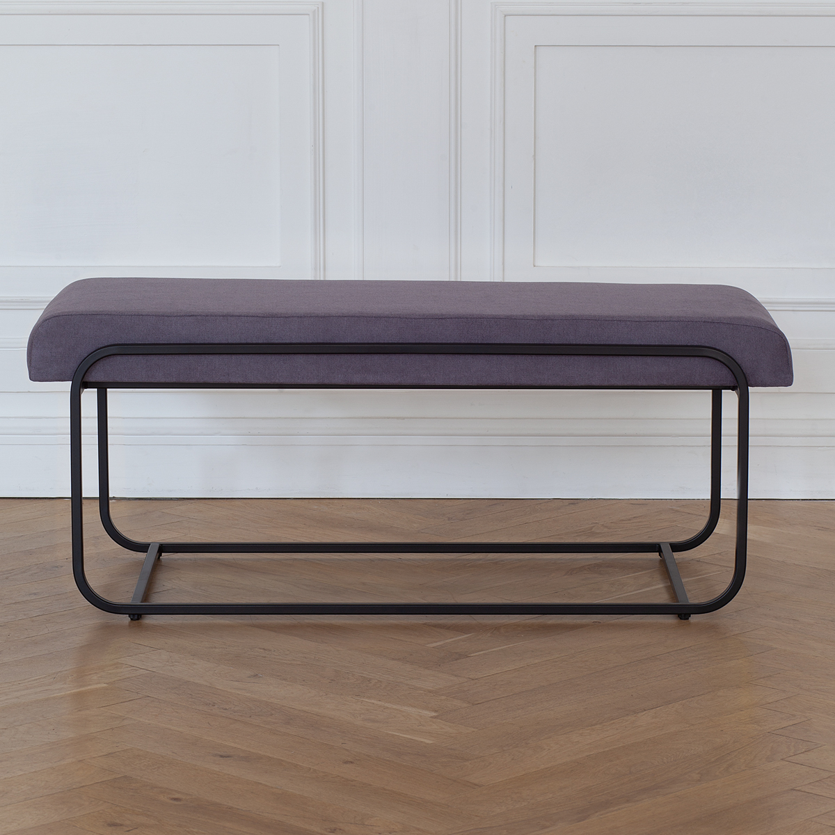Банкетка SIENA с черным основанием из стали и мягким сиденьем из микрошенилла.
