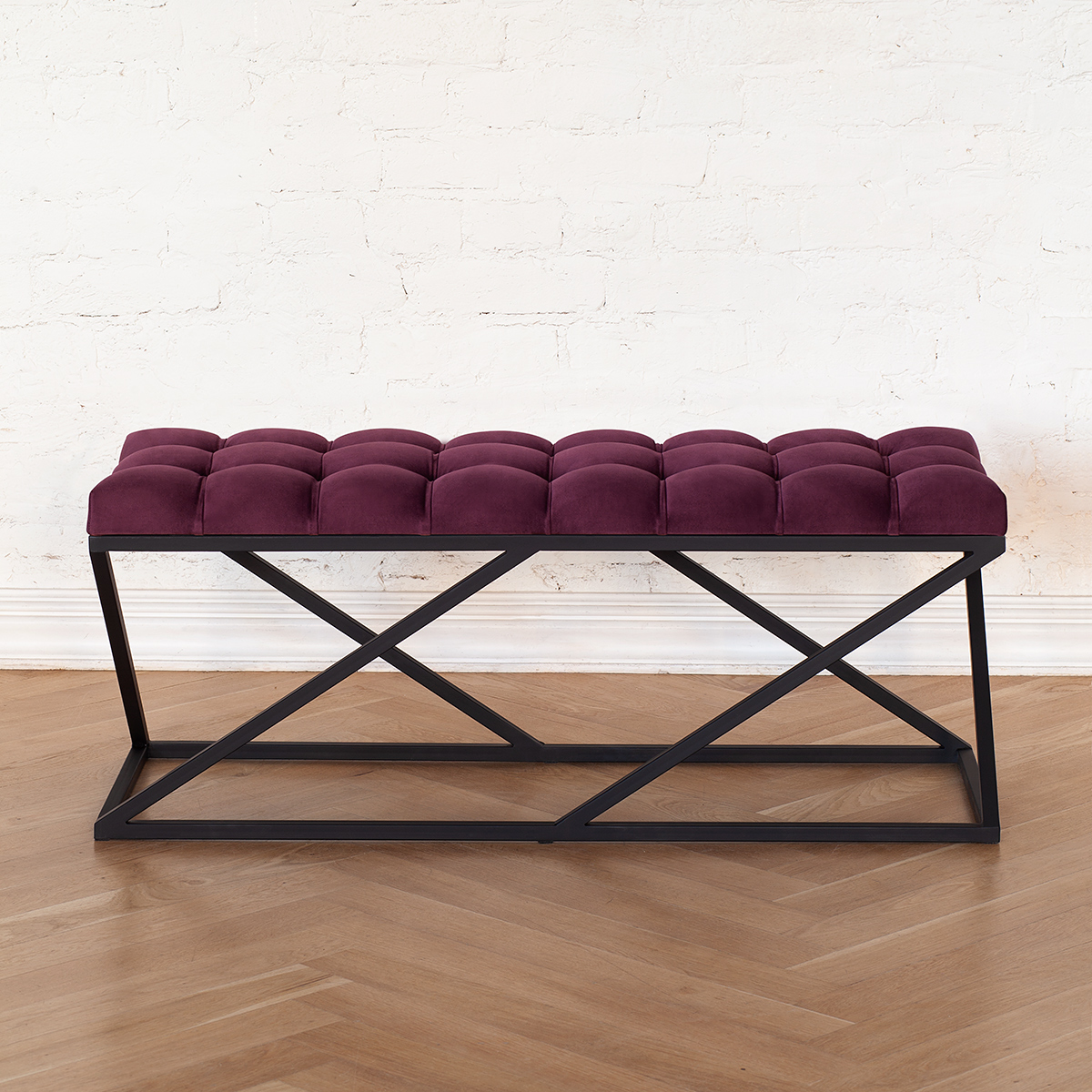 Банкетка ZUMA — элегантное решение для вашего интерьера. Основание из черной стали и мягкое сиденье из велюра создают гармоничный образ.