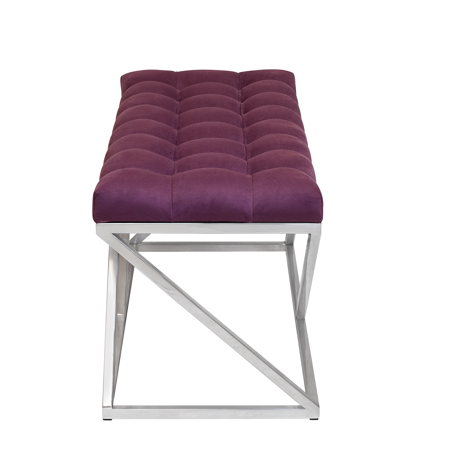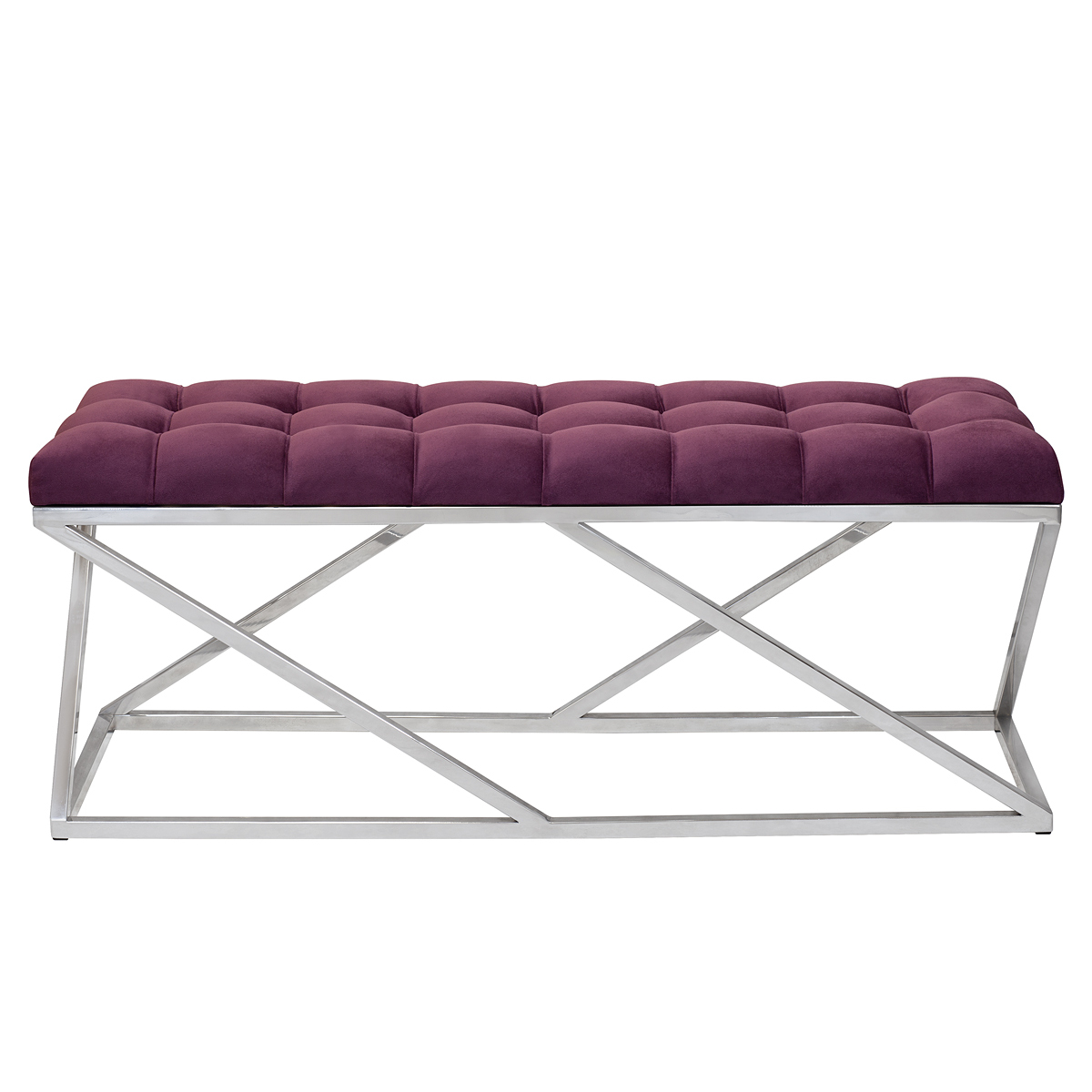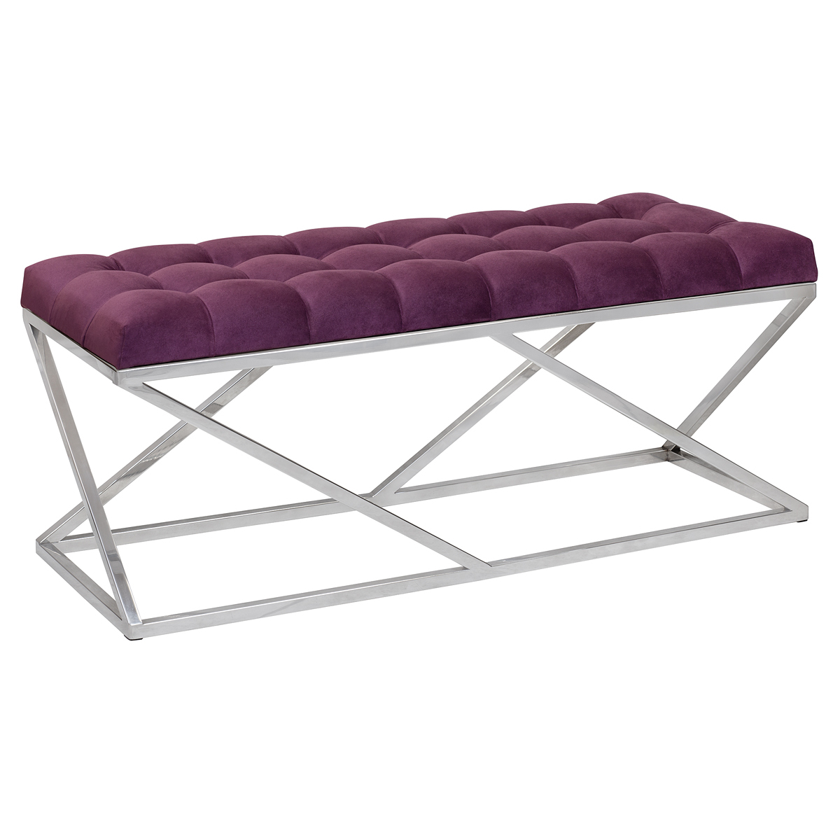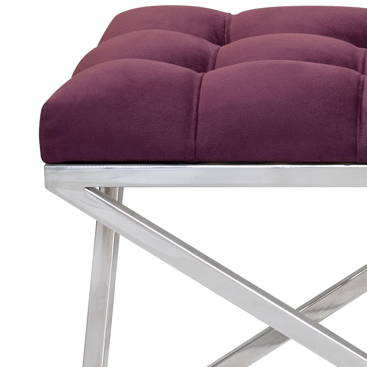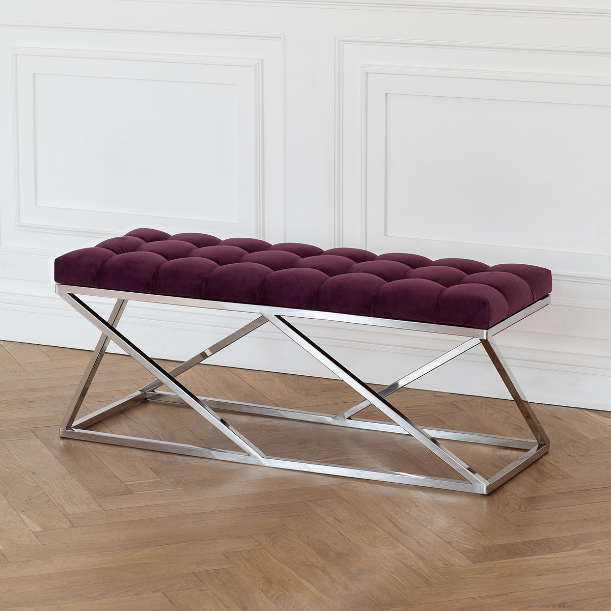 Банкетка ZUMA — это сочетание элегантности и комфорта. Основание из нержавеющей стали и мягкая подушка из искусственного велюра в каретной стяжке создают изысканный образ.