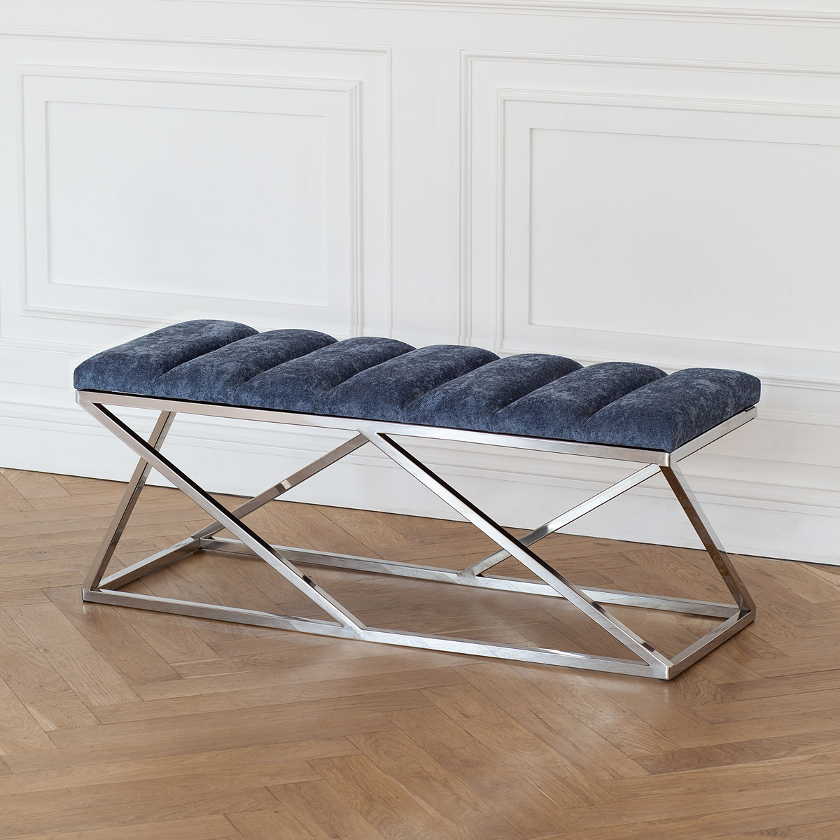 Банкетка ZUMA — это сочетание элегантности и комфорта. Основание из нержавеющей стали и мягкая подушка из микрошенилла в стяжке Bulon создают изысканный образ.