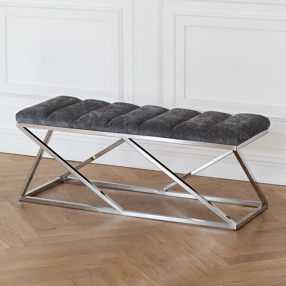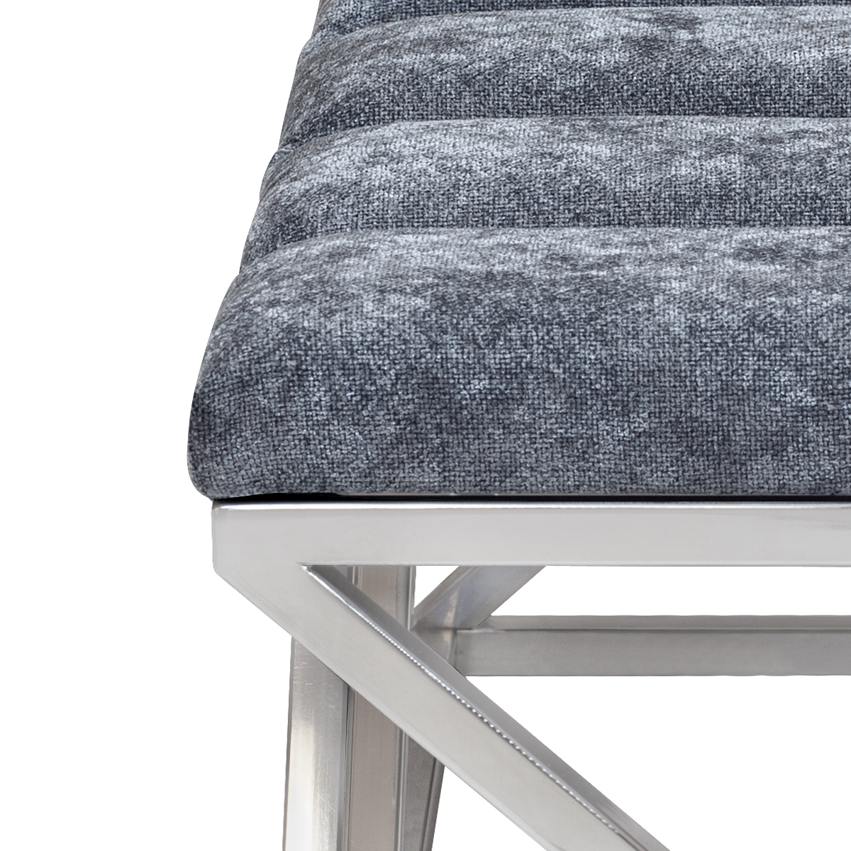 Банкетка ZUMA — элегантное решение для вашего интерьера. Основание из нержавеющей стали и мягкое сиденье из микрошенилла создают гармоничный образ.