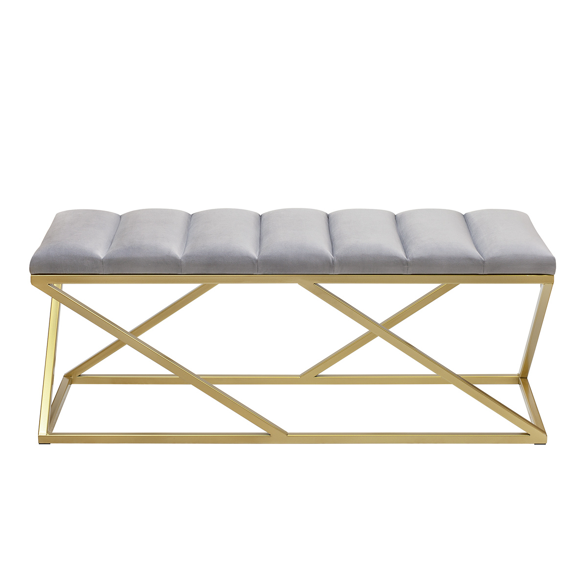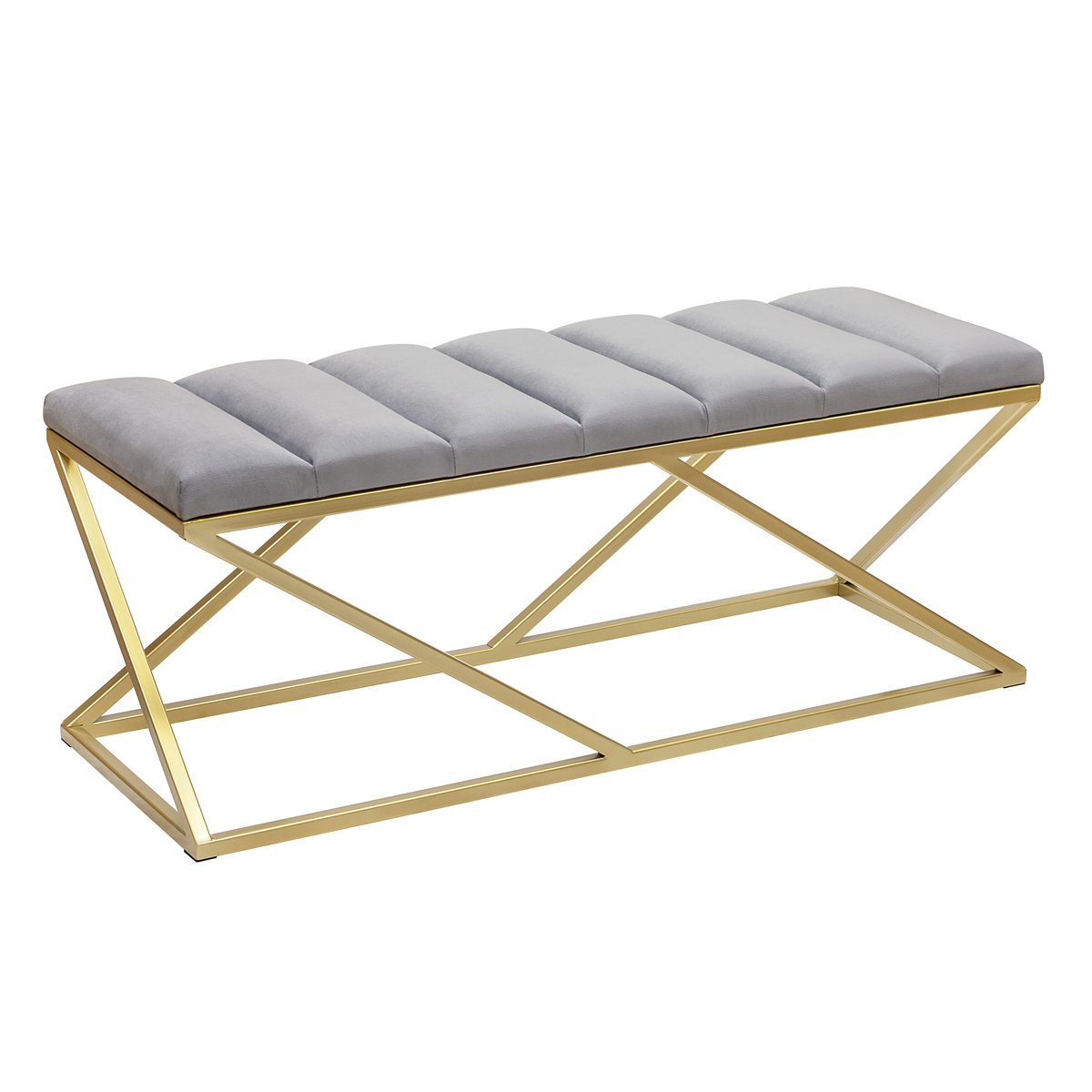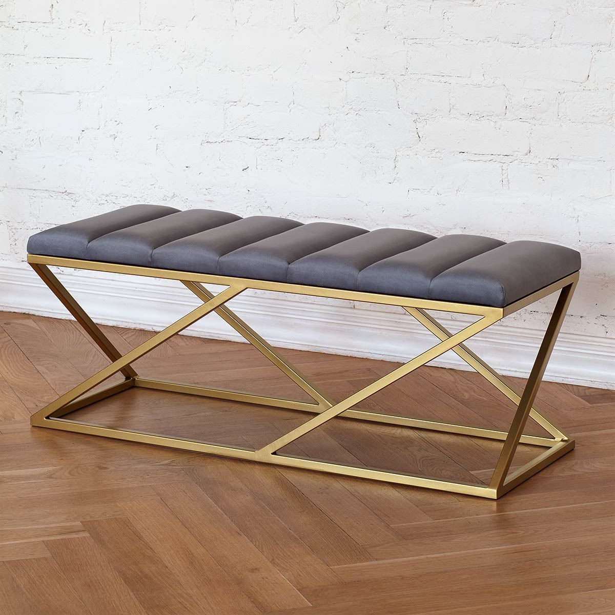 Банкетка ZUMA — элегантное решение для вашего интерьера. Основание из золотистой стали и мягкое сиденье из велюра создают гармоничный образ.