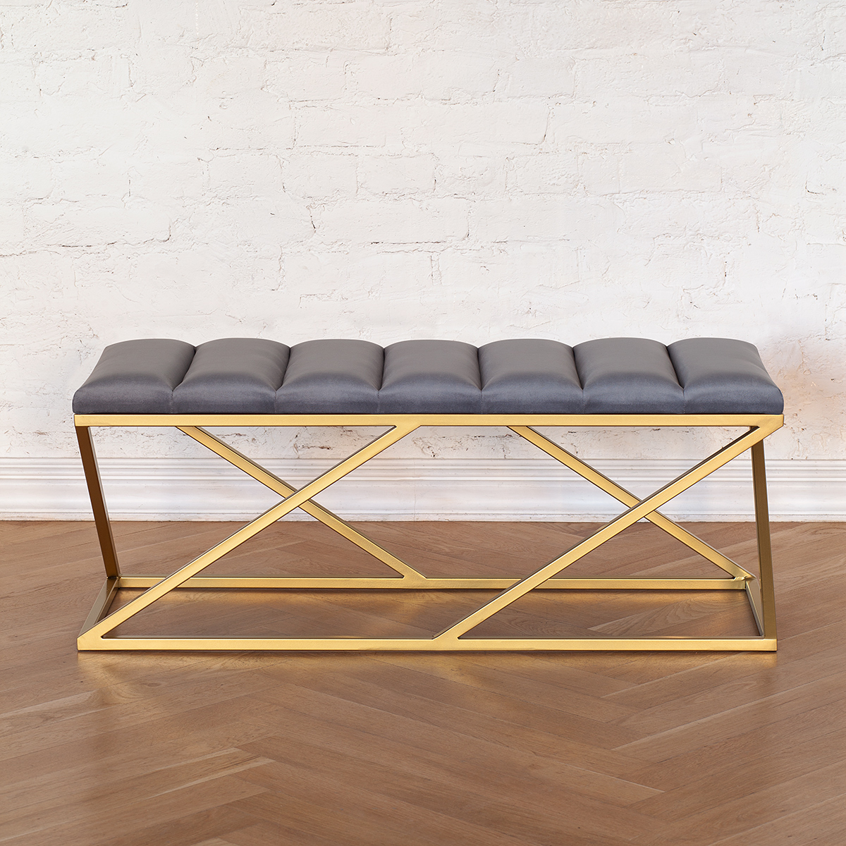 Банкетка ZUMA — это сочетание элегантности и комфорта. Золотистое основание и мягкая велюровая подушка в стяжке Bulon создают изысканный образ.
